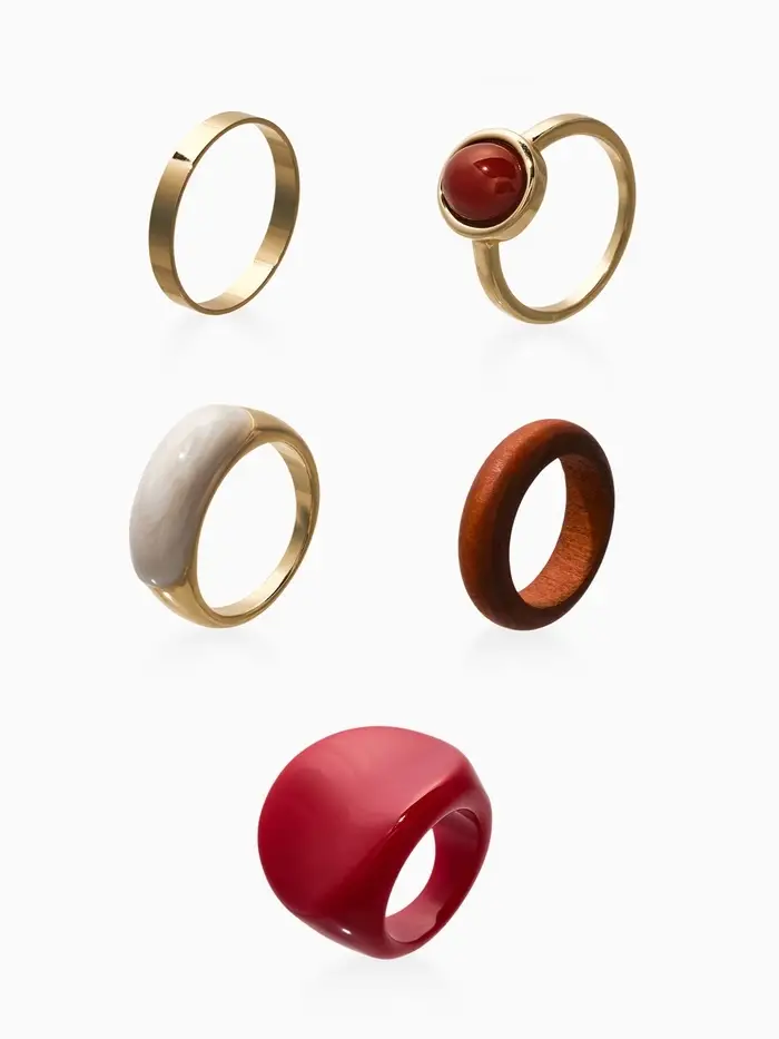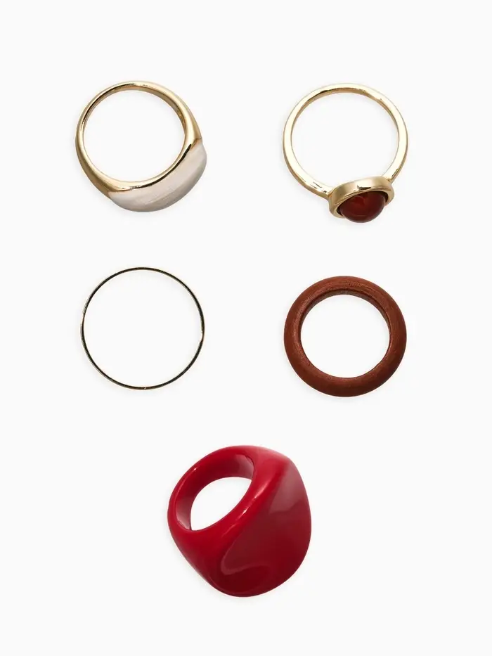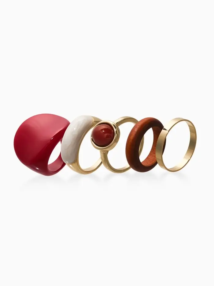 Набор колец 5 шт "Новый стиль" овал с деревом, размер МИКС, цвет красно-белый в золоте
