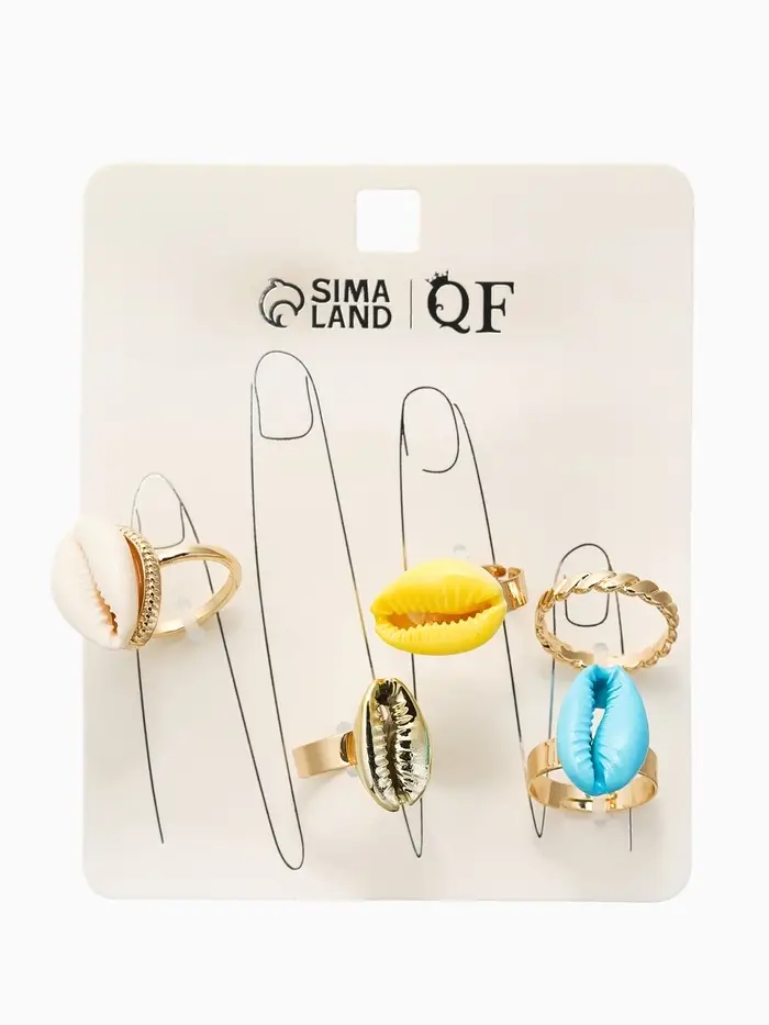 Набор колец 5 шт "Новый стиль" ракушки, размер МИКС, цветные в золоте