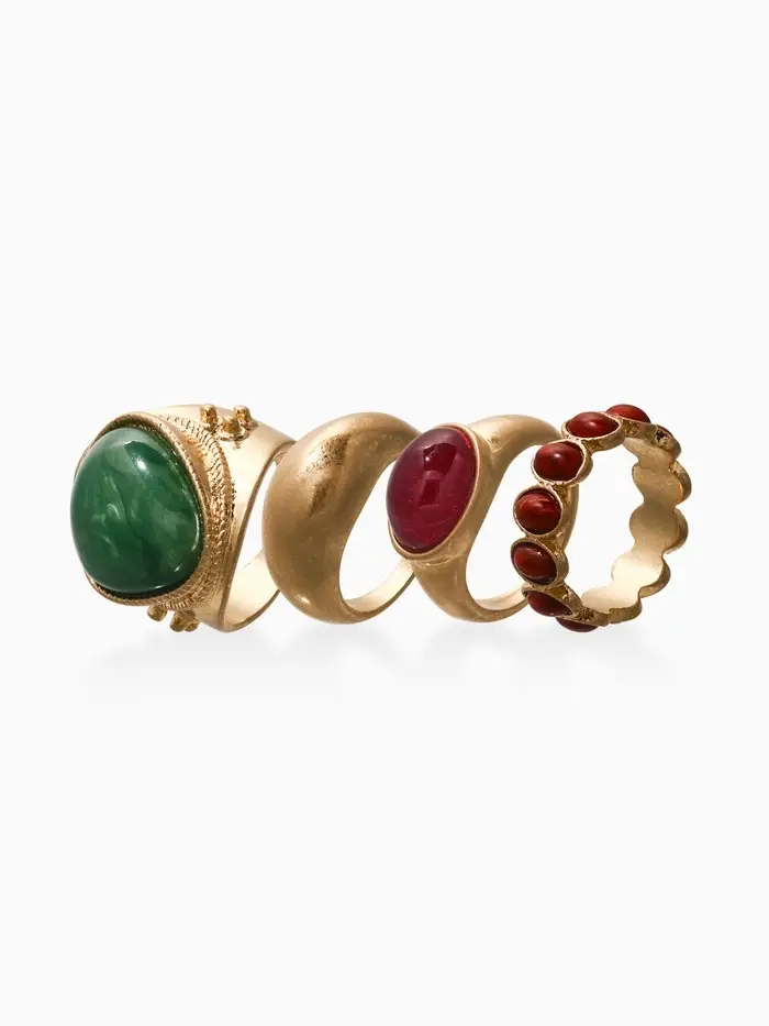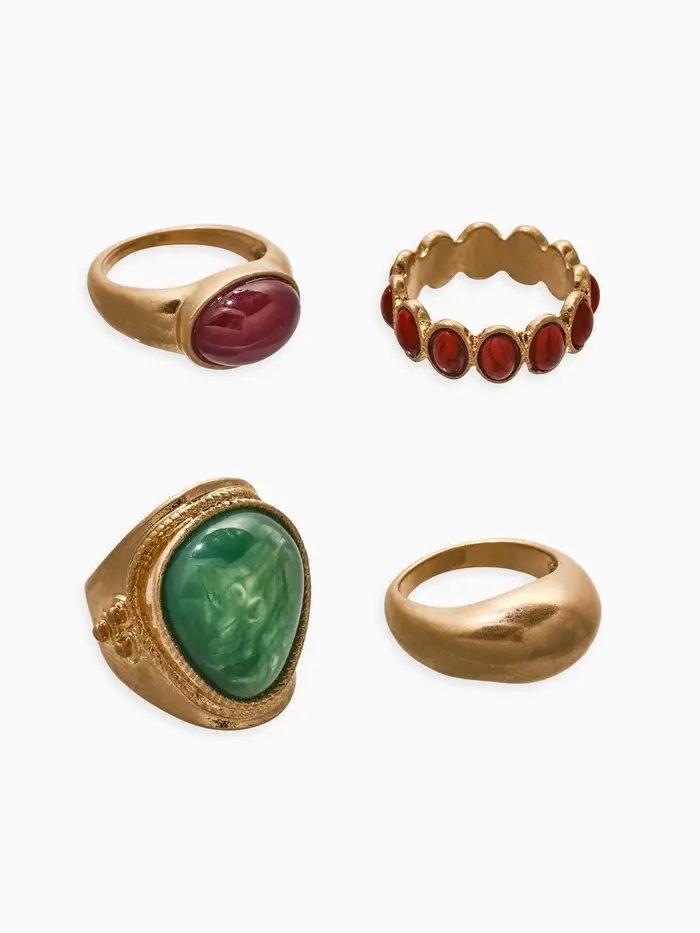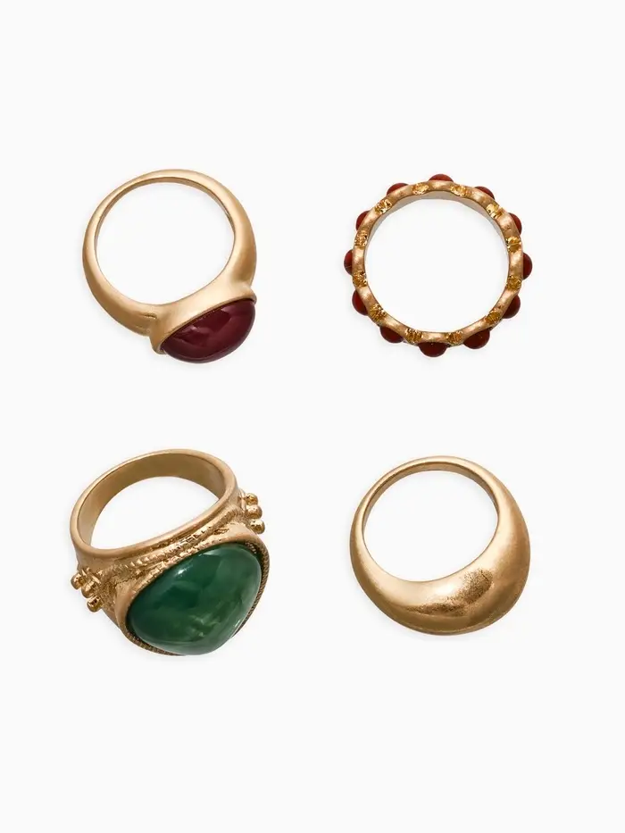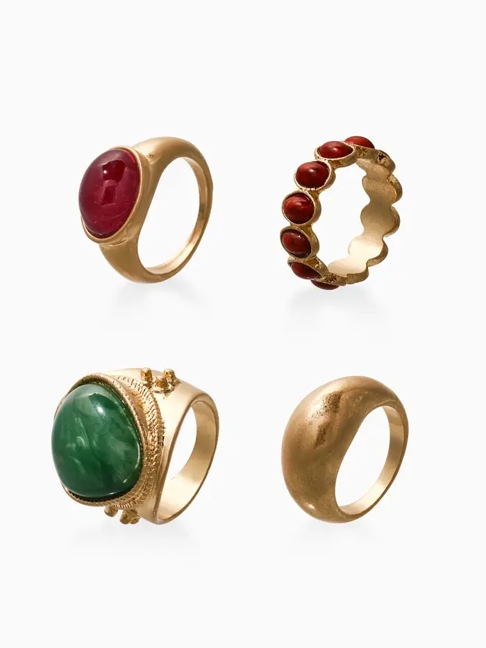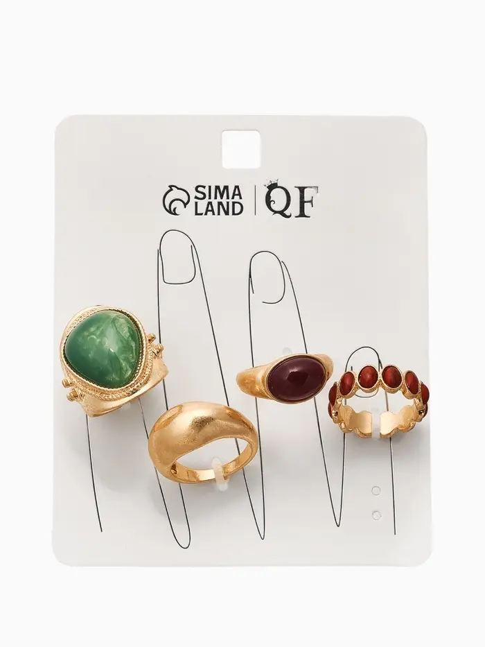 Набор колец 4 шт "Новый стиль" винтаж, размер МИКС, цвет зелёно-коричневый в золоте