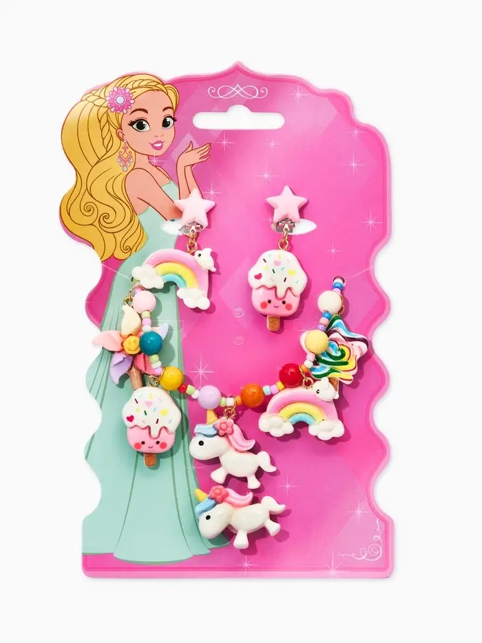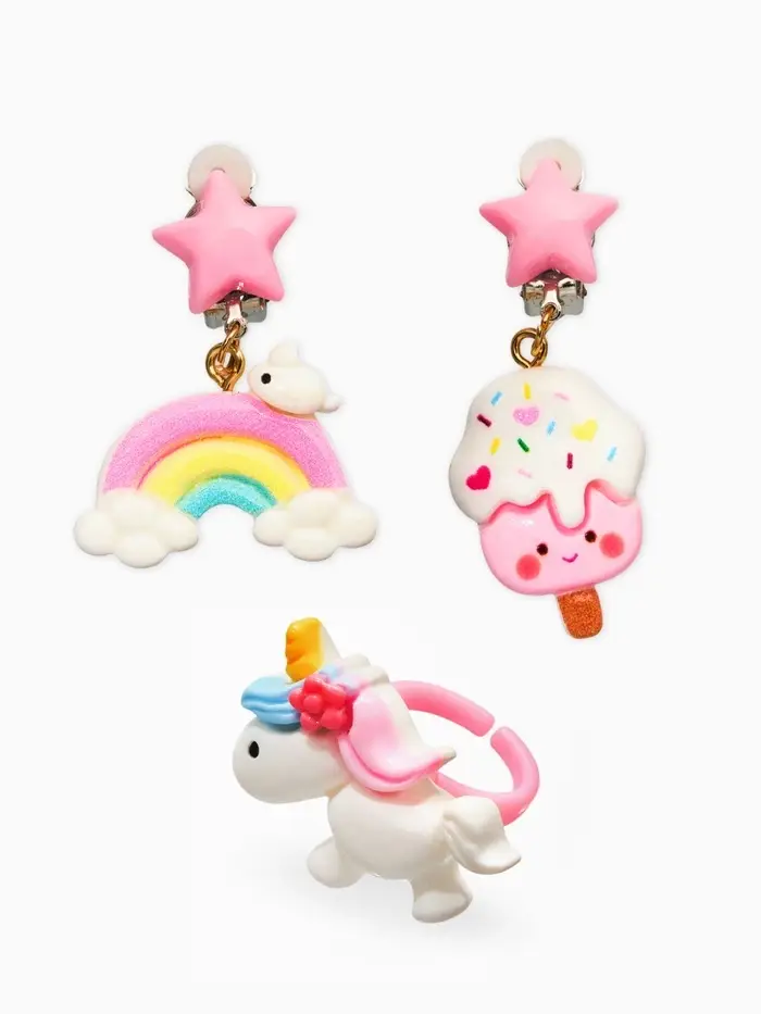Набор детских украшений «Выбражулька. Единорог», сладости, 3 предмета: клипсы, кольцо, бусы