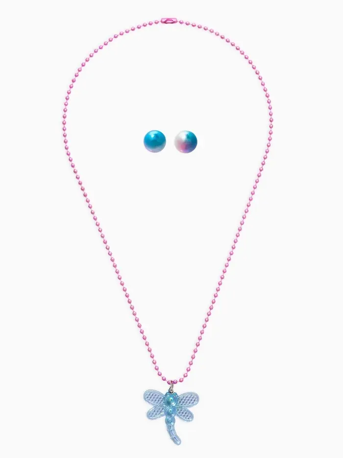Набор детских украшений "Выбражулька" стрекоза, 2 предмета: кулон, пусеты, цвет голубой