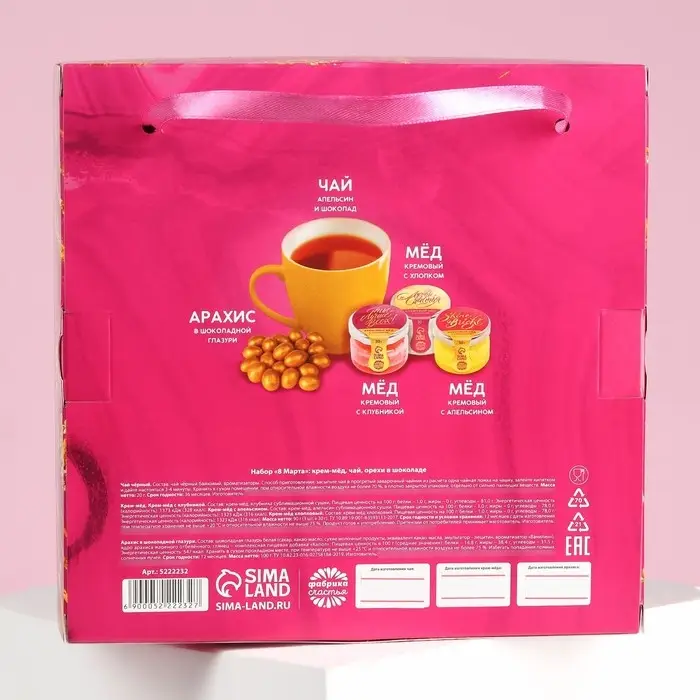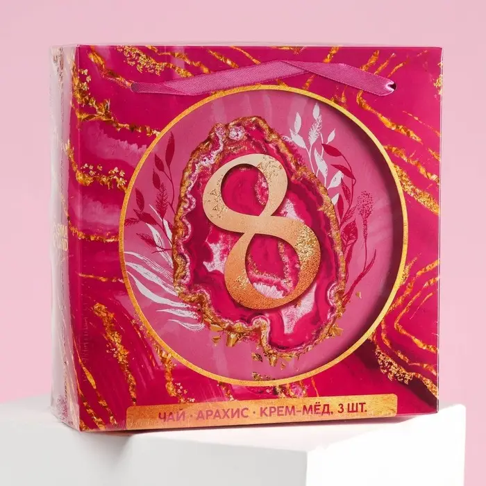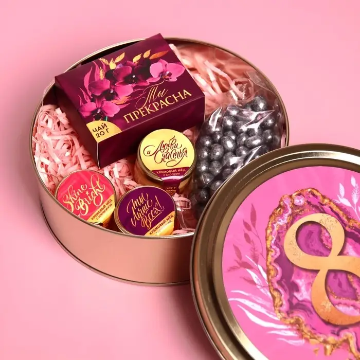 Набор «8 марта»: крем-мед, чай, орехи в шоколаде