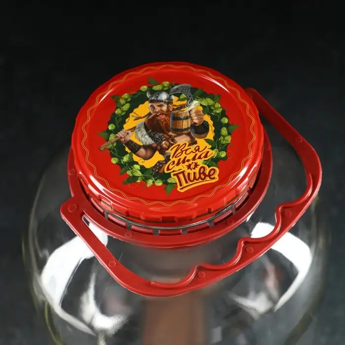 Кувшин стеклянный «Вся сила в пиве», 3 л, с нажимным краном, с ручкой держателем, в коробке