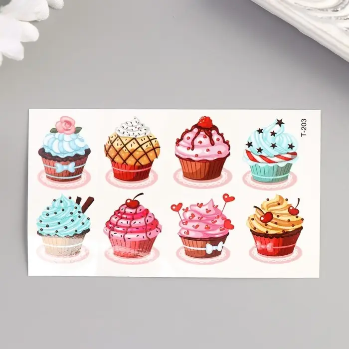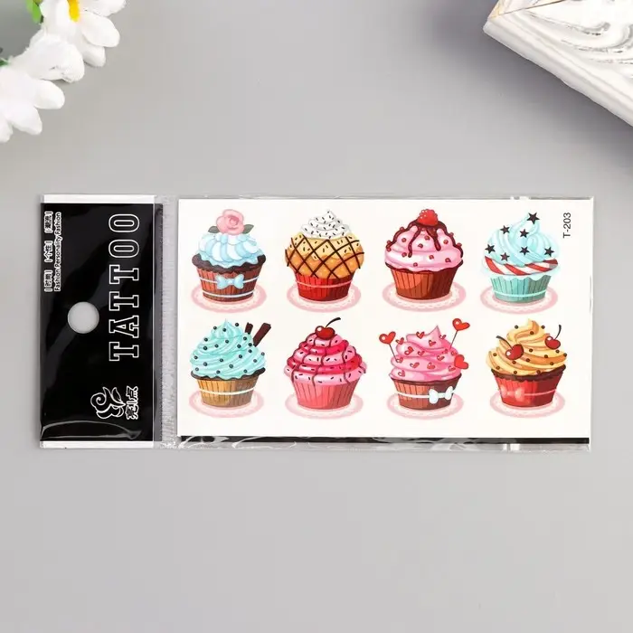 Добавьте яркие акценты в свой образ с помощью этих удивительных переводных тату! Изображение аппетитного пирожного станет настоящим украшением для любой девочки, придавая ей уверенности и игривости. Эти татуировки — отличный способ самовыражения, позволяющий создать уникальный стиль без долговременных обязательств.