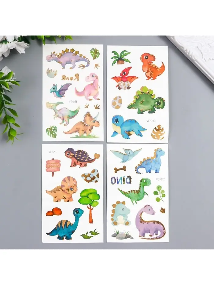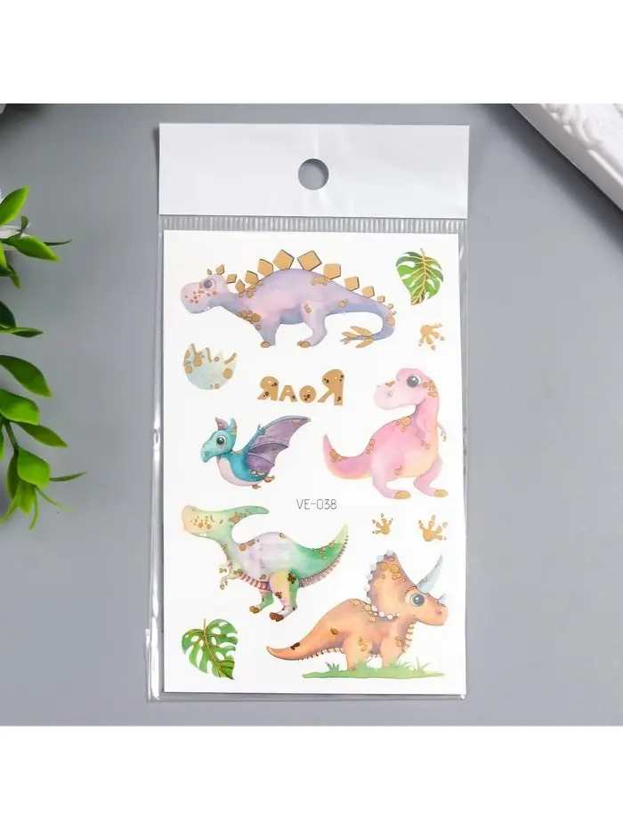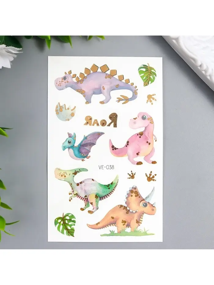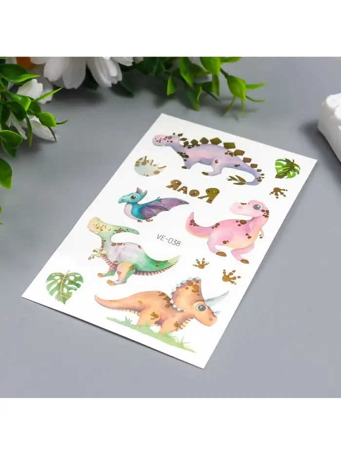 Переводные тату на тело цветные «Малыши динозаврики», с золотом, 12×7.5 см, МИКС