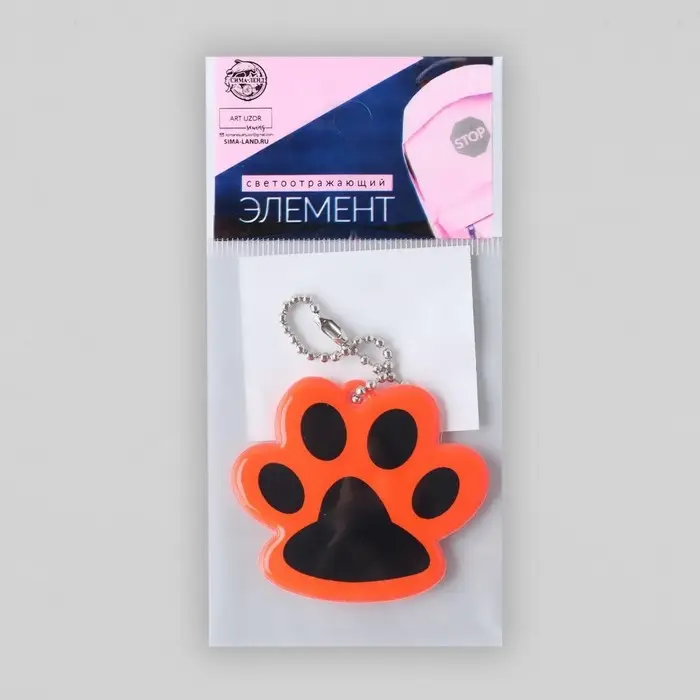 Светоотражающий элемент «Лапка», 5,5 × 4,8 см, цвет оранжевый