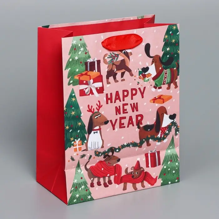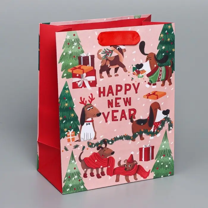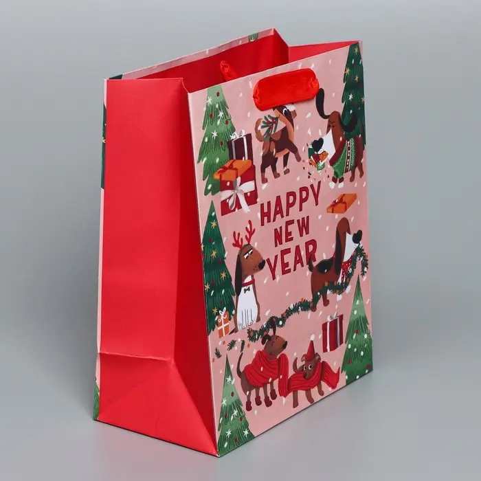 Пакет подарочный новогодний крафтовый вертикальный «Собачьи истории», MS 18 х 23 х 10 см
