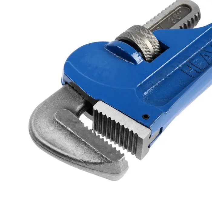 - Конструкция типа Stillson: Зубчатые губки обеспечивают надежный захват даже на округлых поверхностях. Угол зажима в 90° предотвращает проскальзывание под нагрузкой.