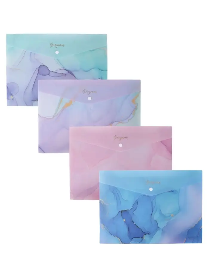 Папка-конверт на кнопке формат А4 180мкр блестящая МИКС Мрамор (штрихкод на штуке)