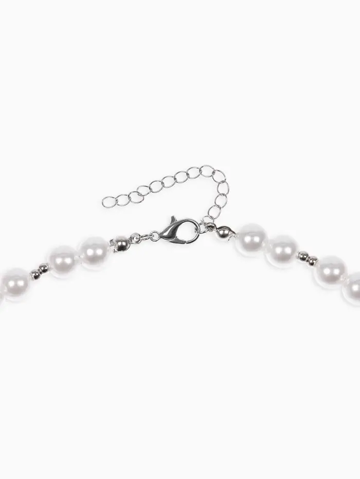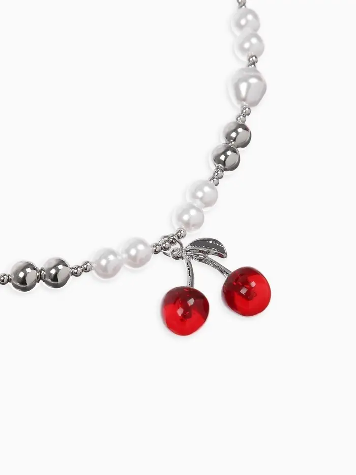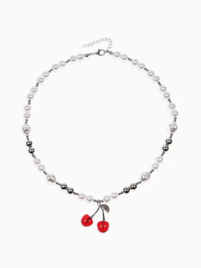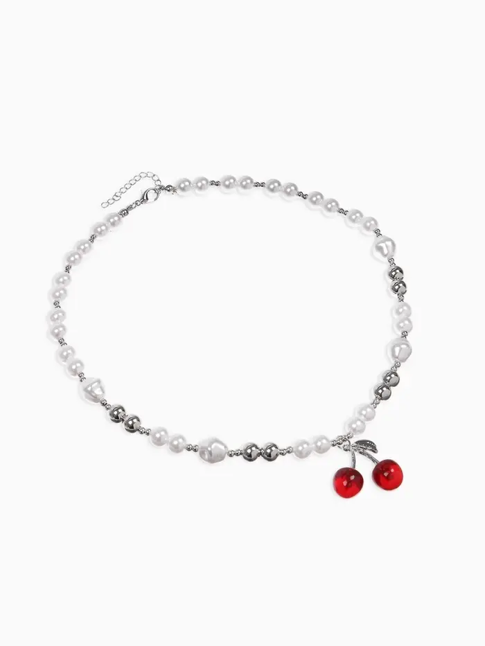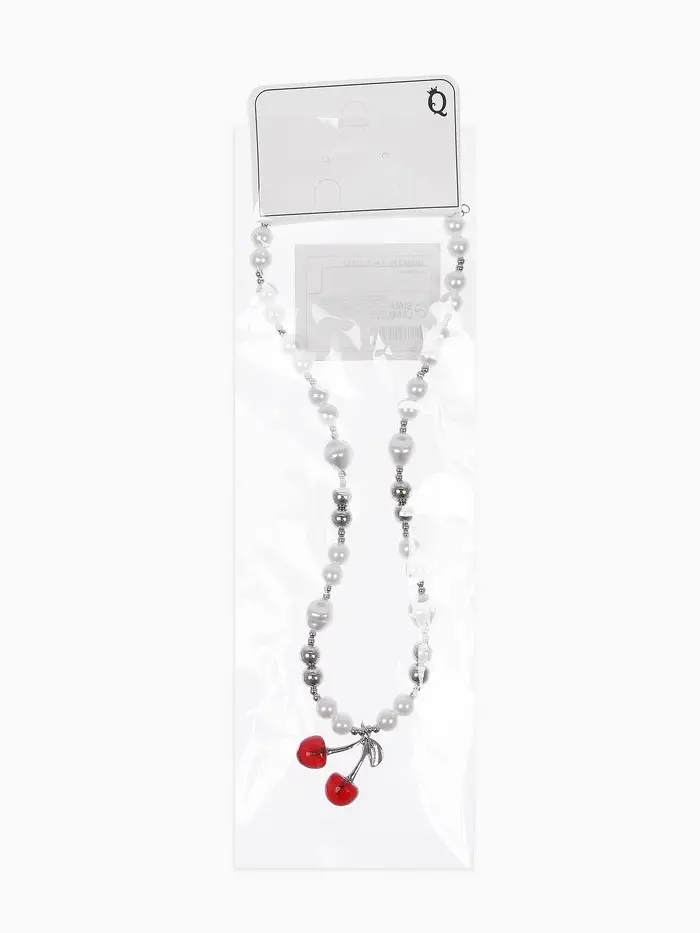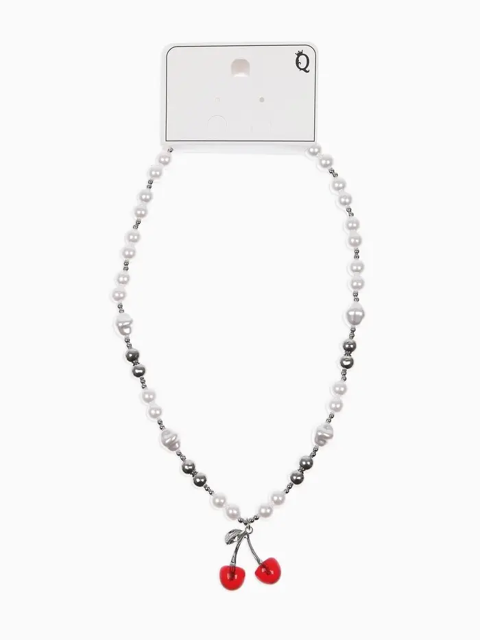Кулон на жемчужных бусах "Вишня", цвет белый в серебре