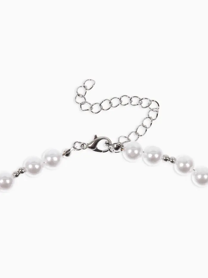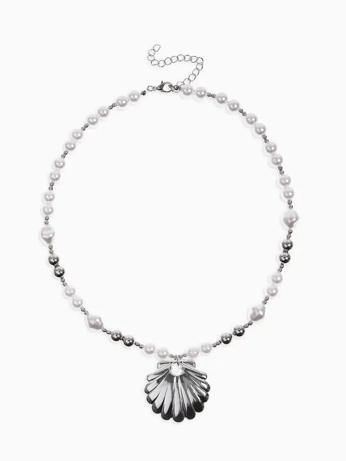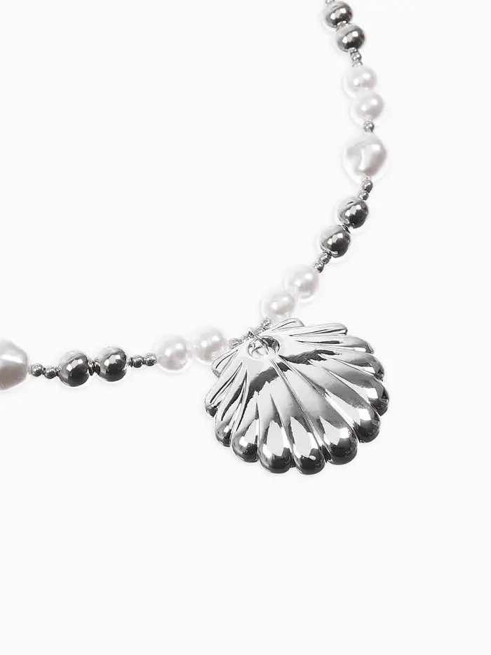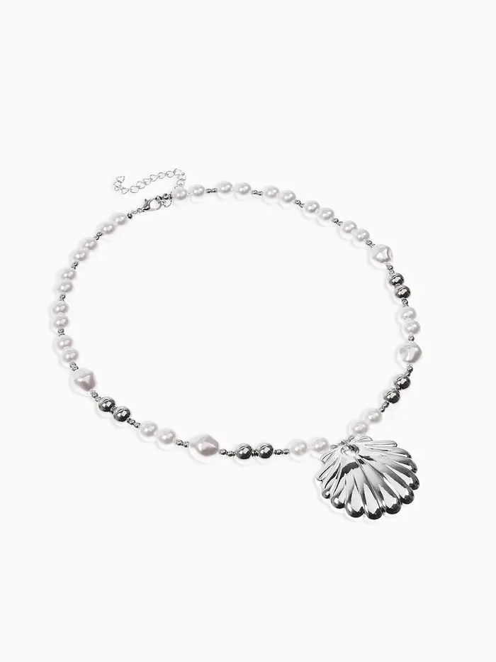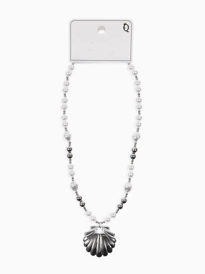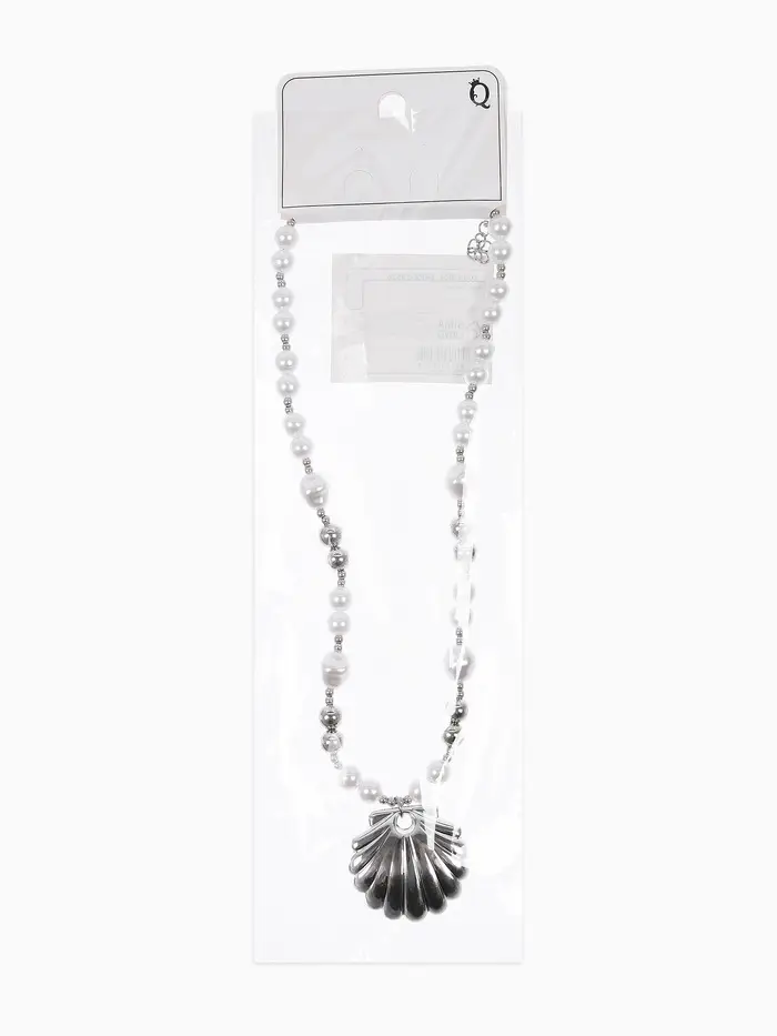 Колье на жемчужных бусах «Ракушка», L=55 см, белый в серебре