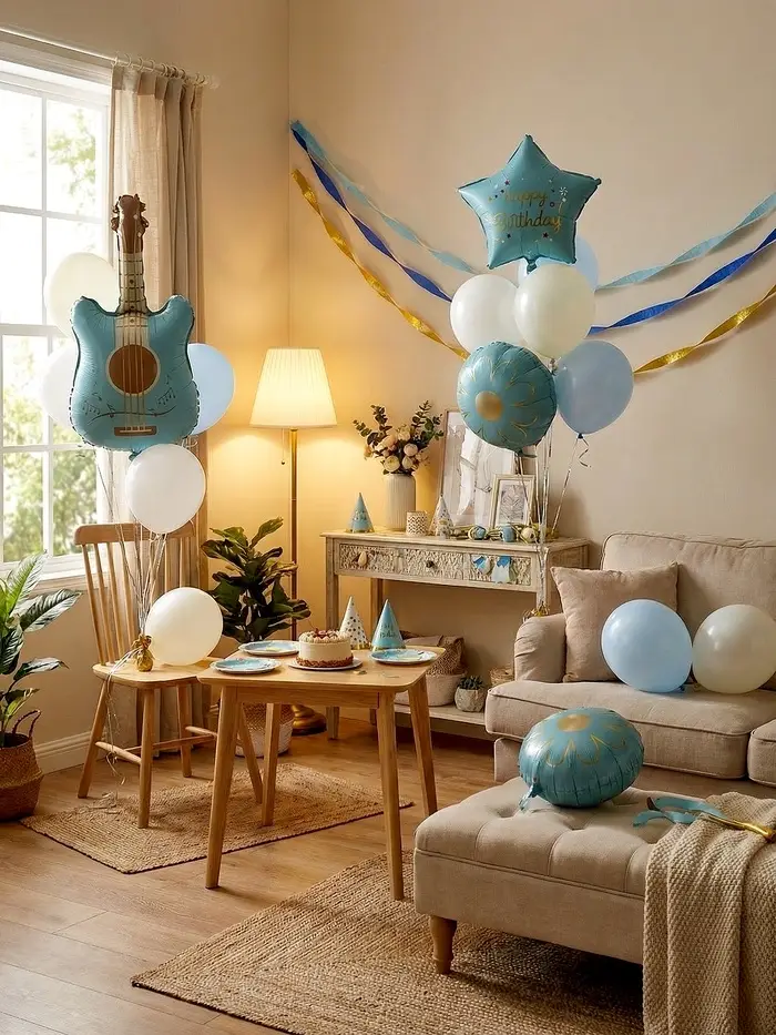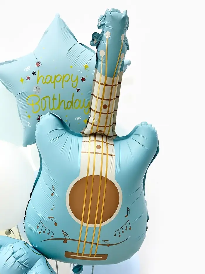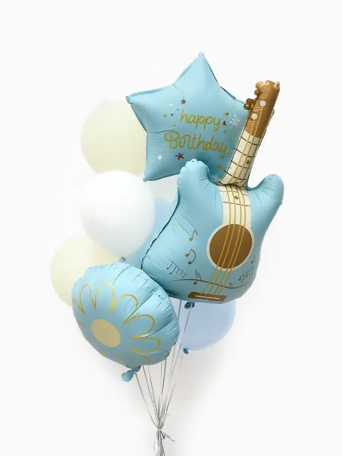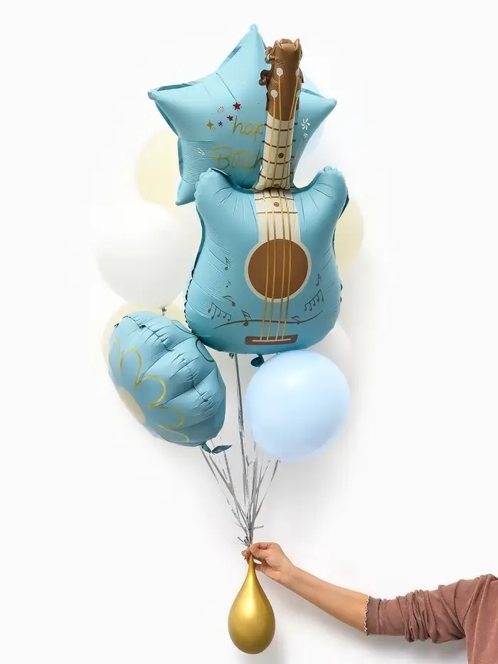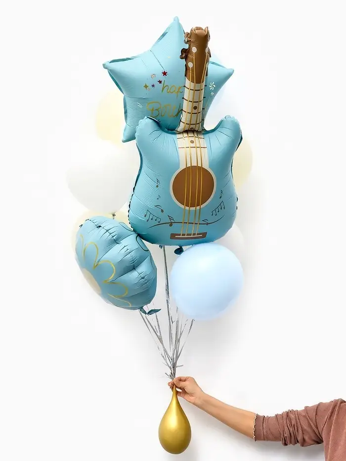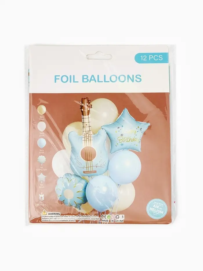 Воздушные шары "Голубая гитара" фольга, латекс, набор 12 штук
