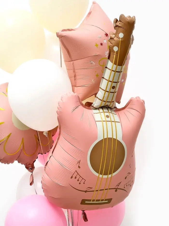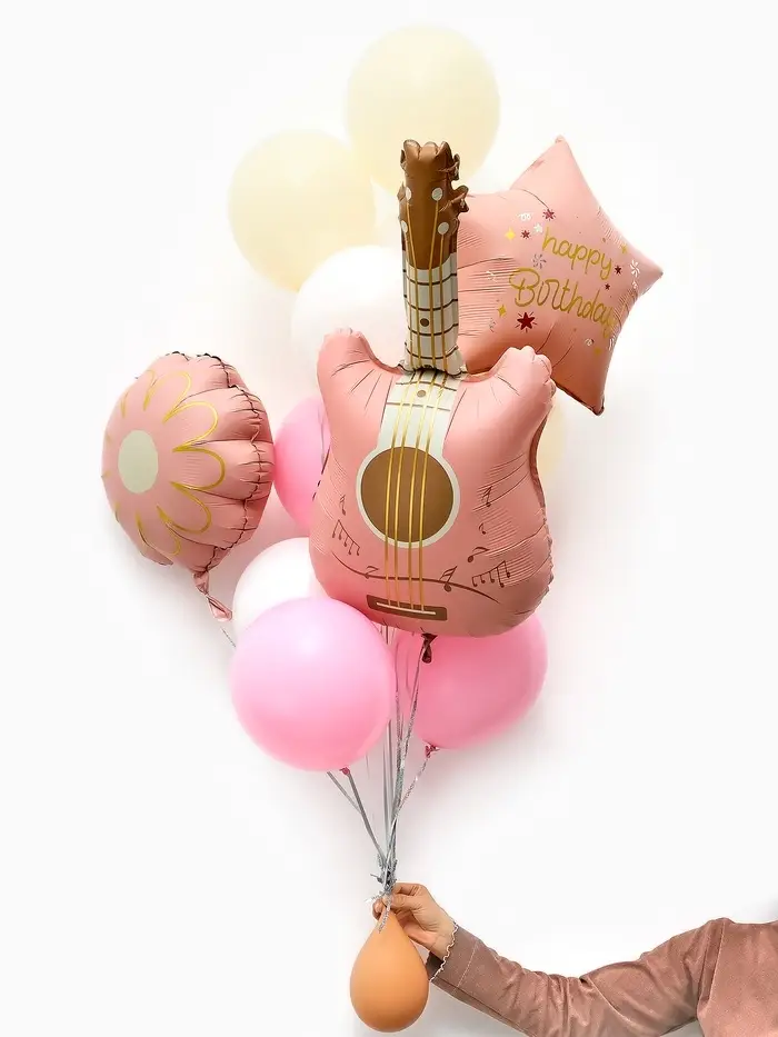 Воздушные шары "Розовая гитара" фольга, латекс, набор 12 штук