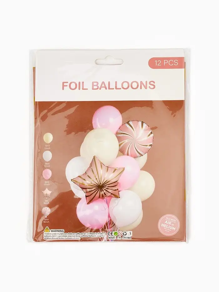 Воздушные шары "Розовые грани" фольга, латекс, набор 12 штук
