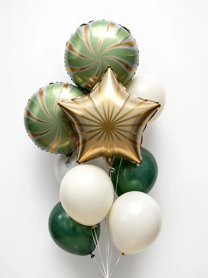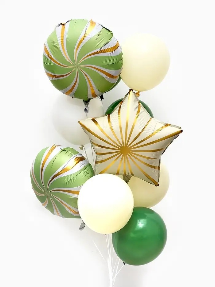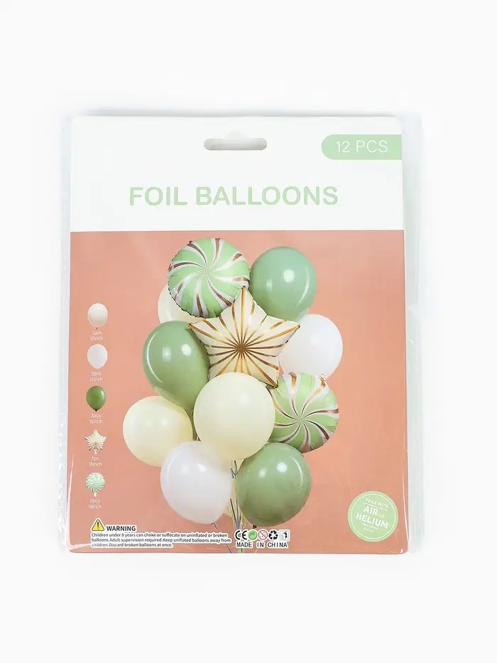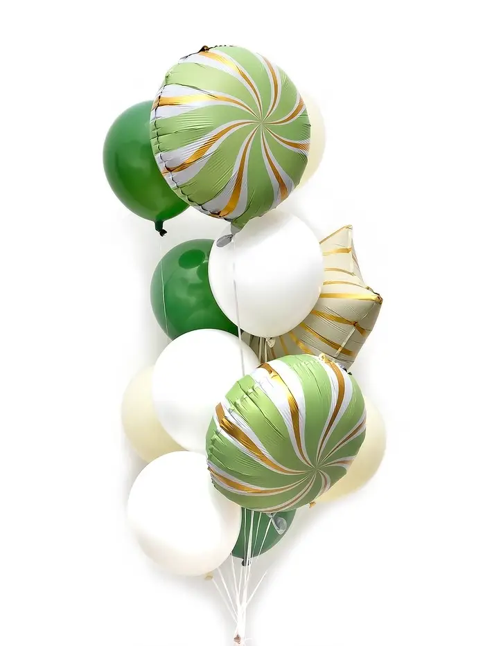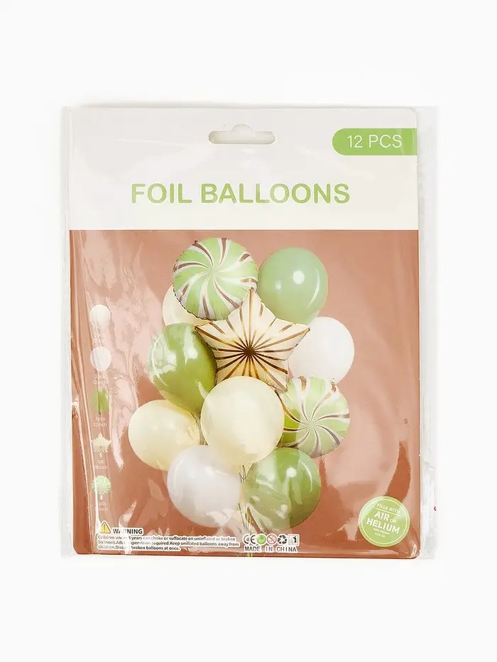 Воздушные шары "Зеленые грани" фольга, латекс, набор 12 штук