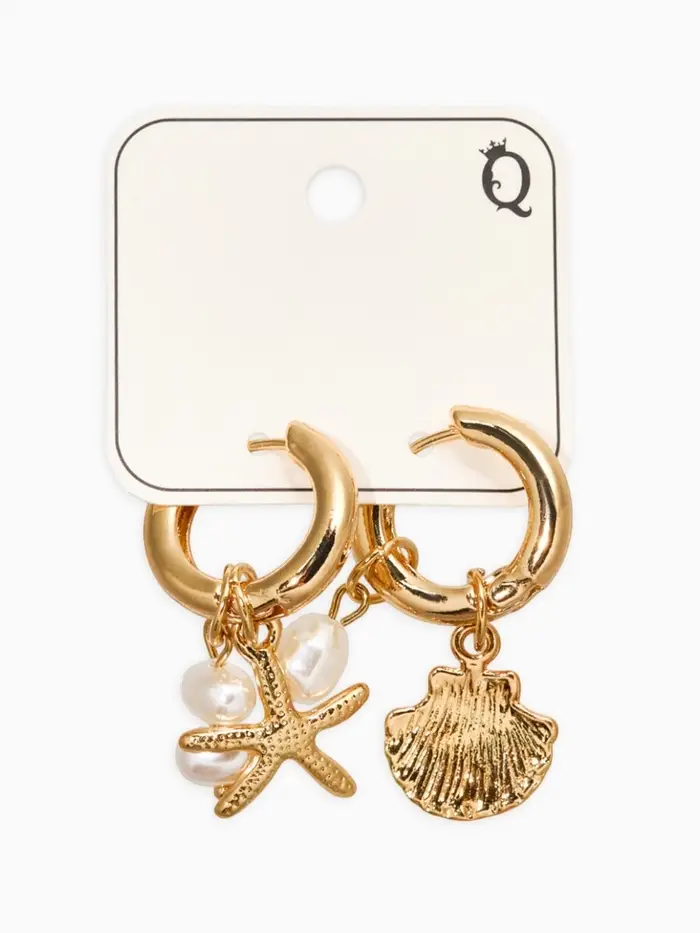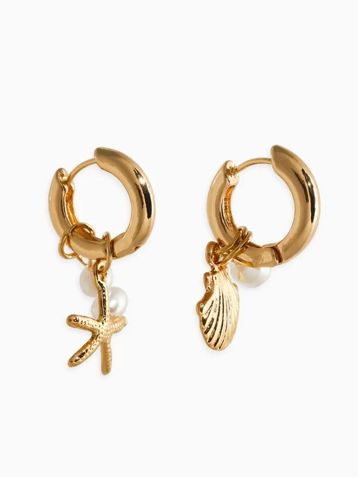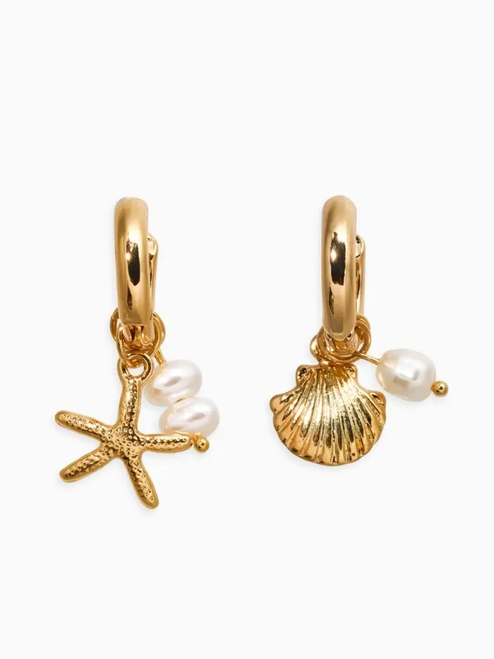 Серьги жемчуг "Ракушка со звездой", цвет белый в золоте