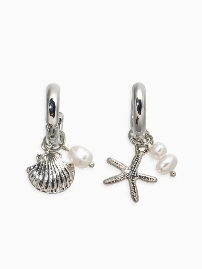 Серьги жемчуг "Ракушка со звездой", цвет белый в серебре