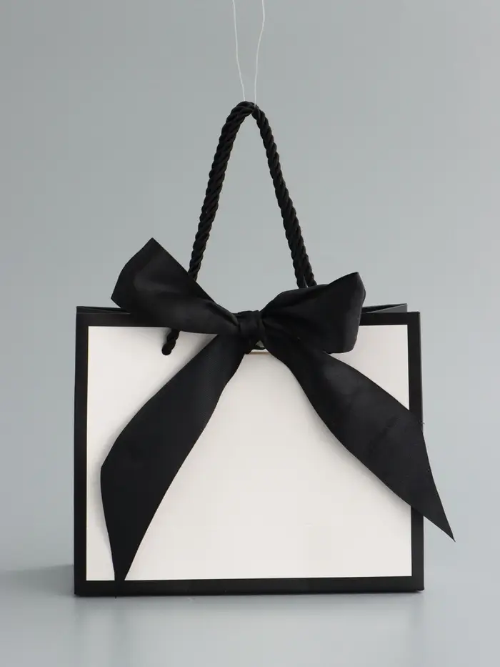 Пакет подарочный, белый, с бантом, 19 х 15 х 7 см
