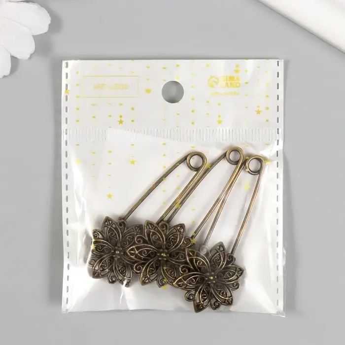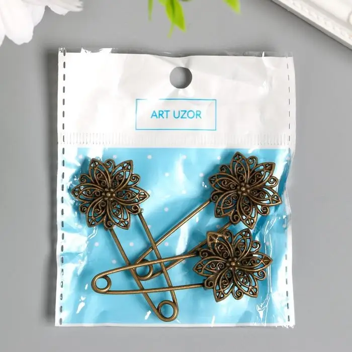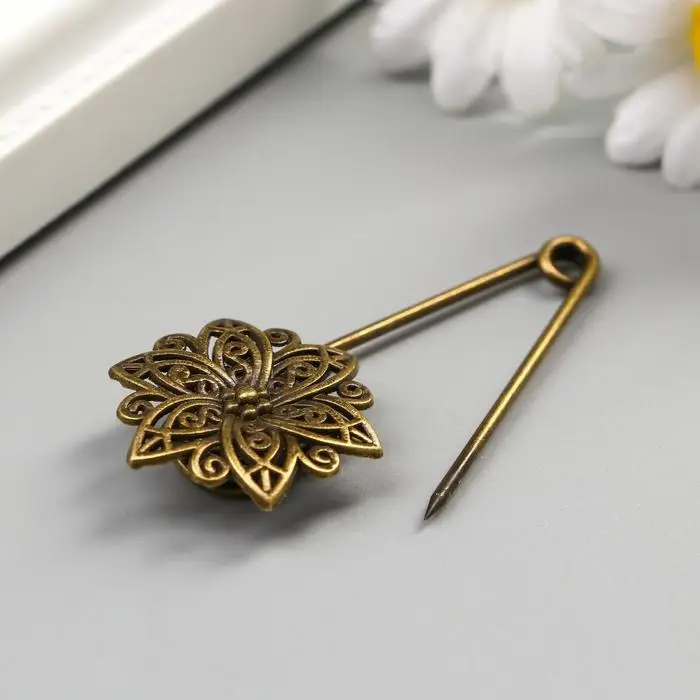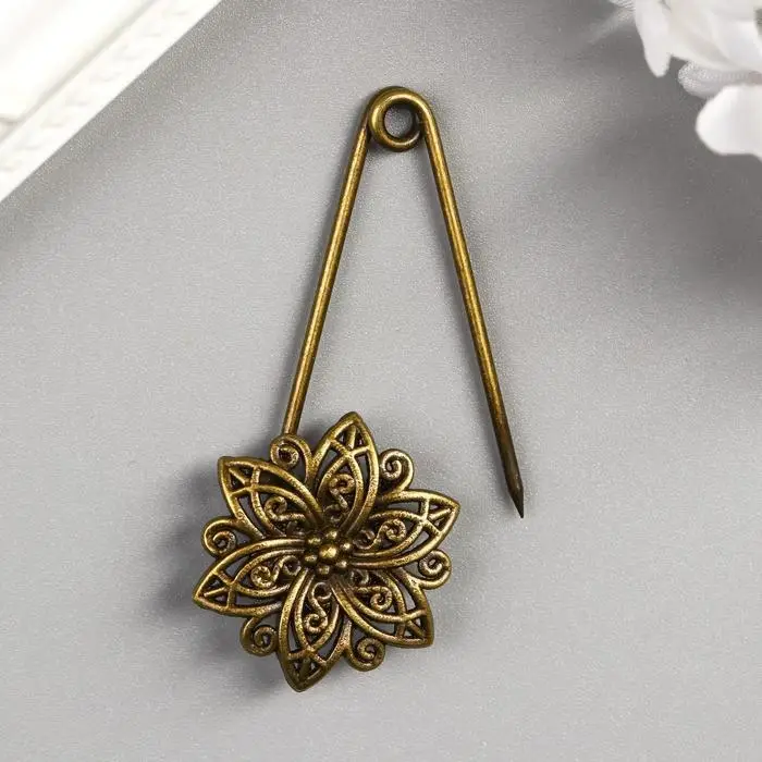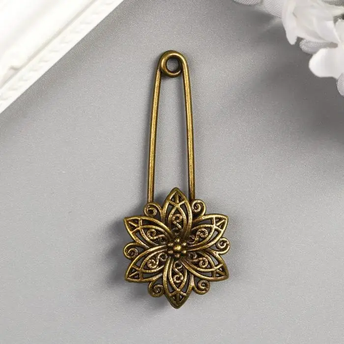 Декор металл для творчества "Булавка с цветком" под латунь (J-25) 5,5х2,5 см