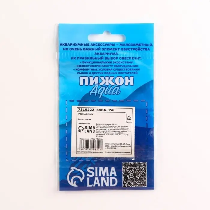 Распылитель воздуха кварцевый, 37 х 20 мм, синий
