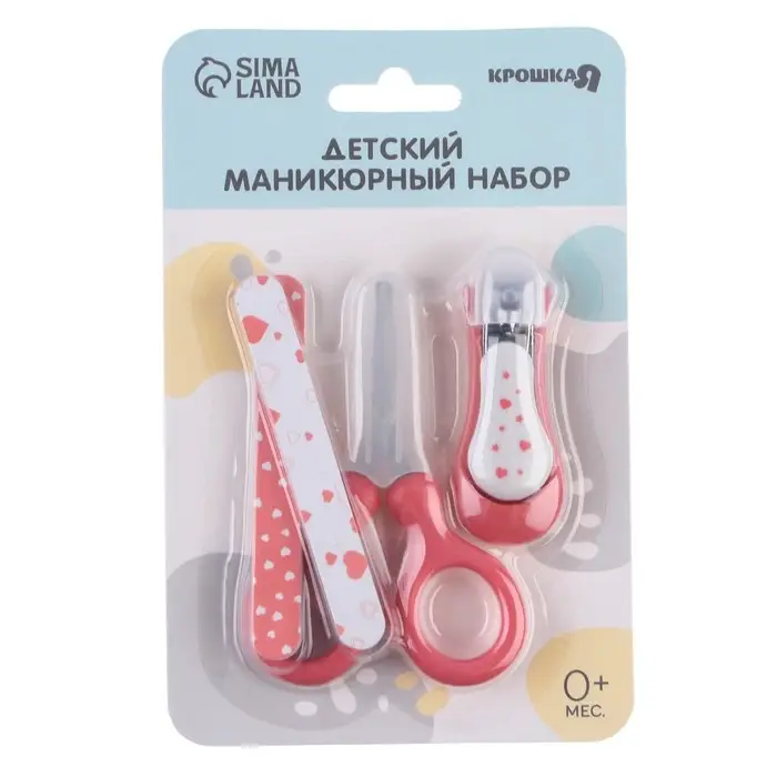 Детский маникюрный набор, 3 предмета: ножницы, пилка, книпсер, от 0 мес., цвет розовый