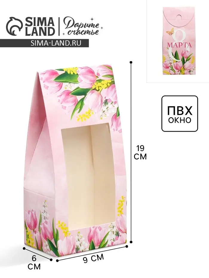 Коробка кондитерская, упаковка, «8 Марта», 9 х 19 х 6 см