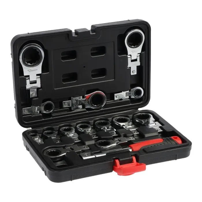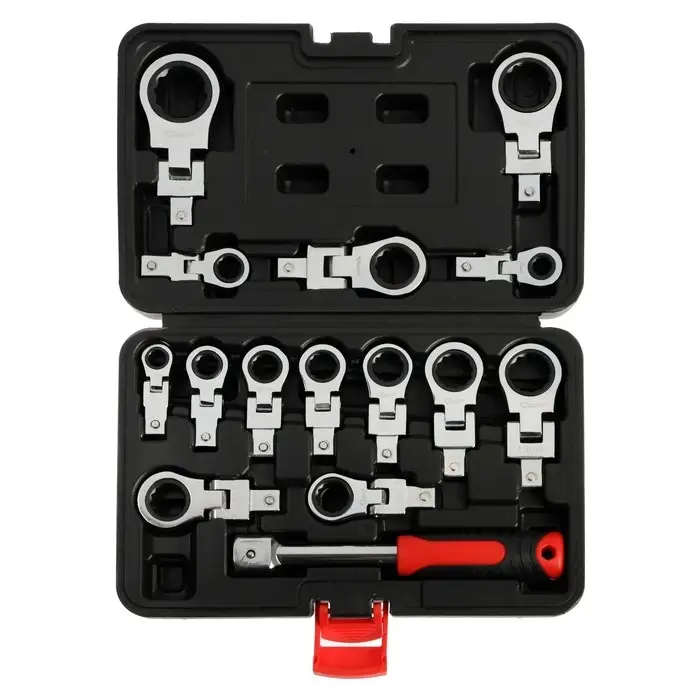 Набор трещоточных ключей ТУНДРА, CrV, сменные поворотные головки 8 - 24 мм, 72 зуба, 15 шт. 992569