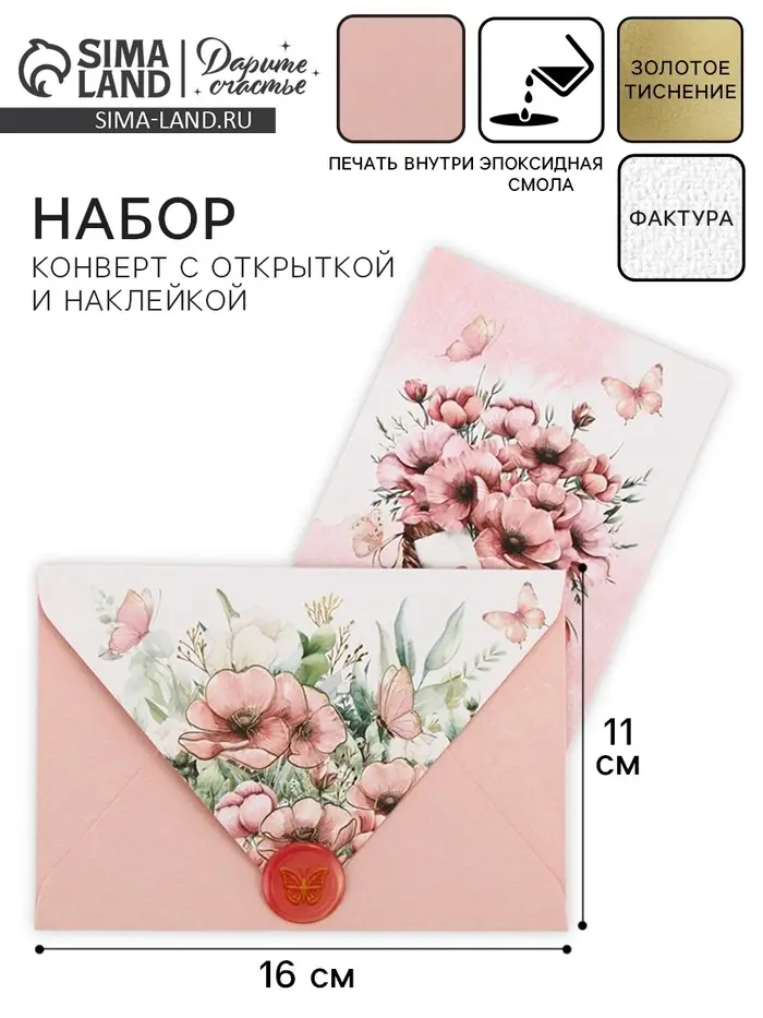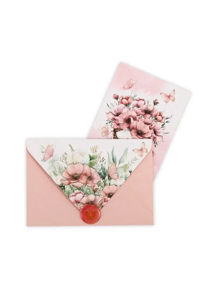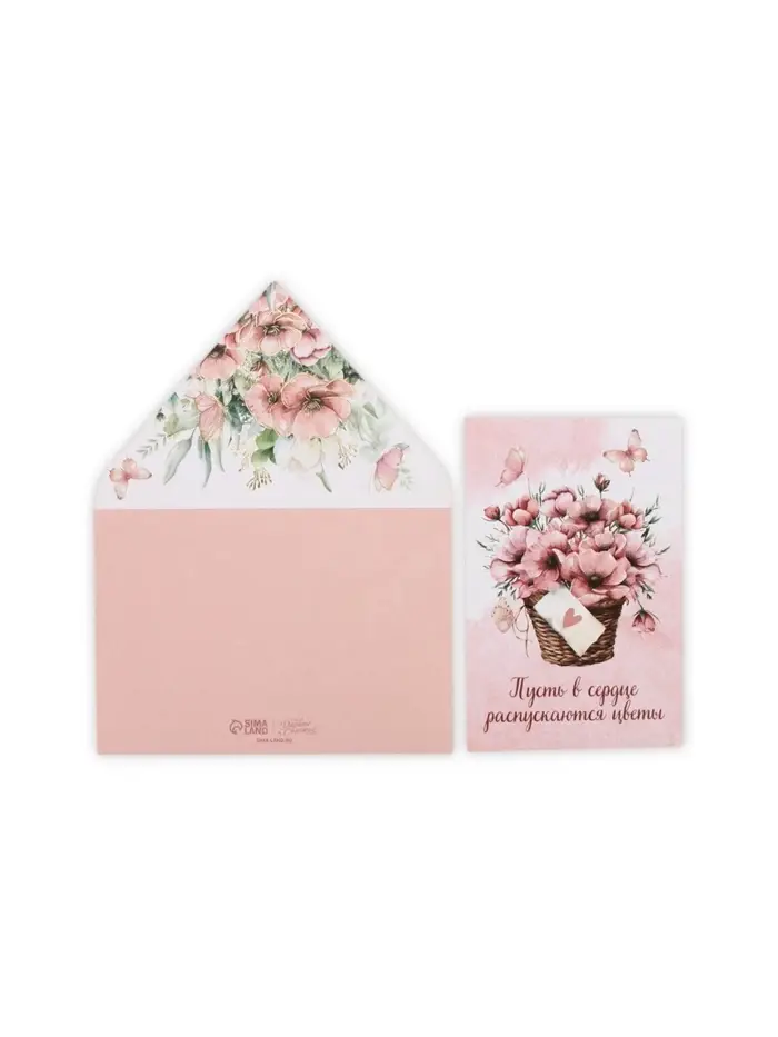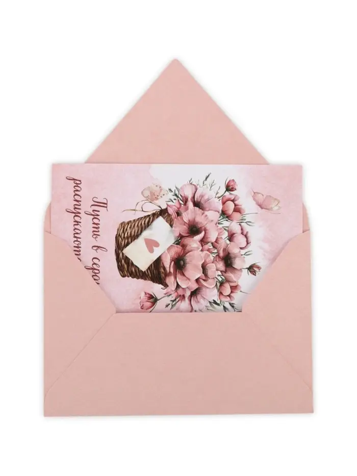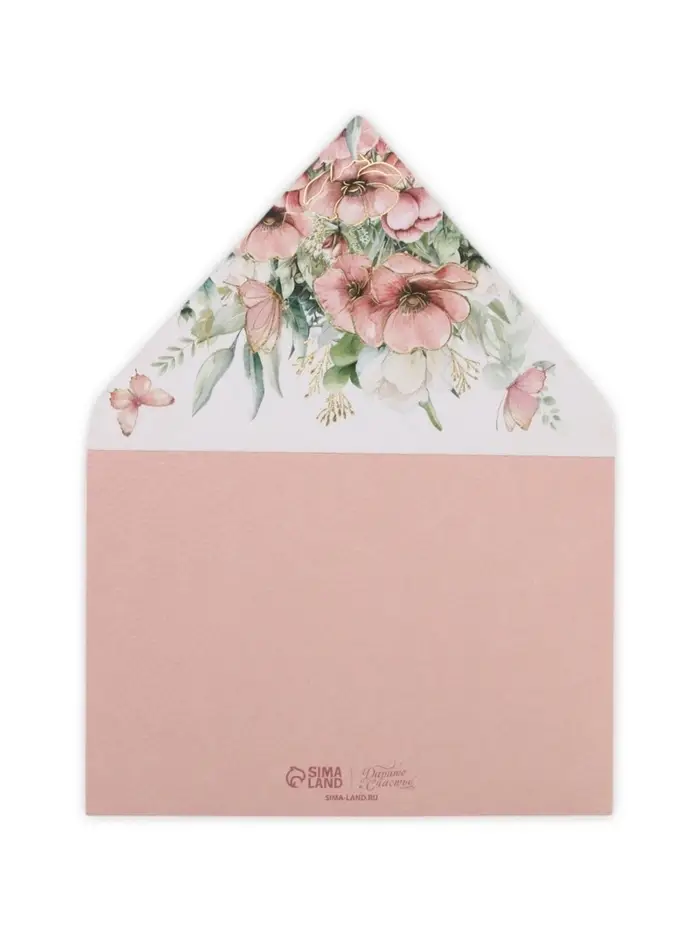 Конверт для денег с открыткой и наклейкой «Нежные цветы», тиснение, акварельный картон, 16 х 11 см