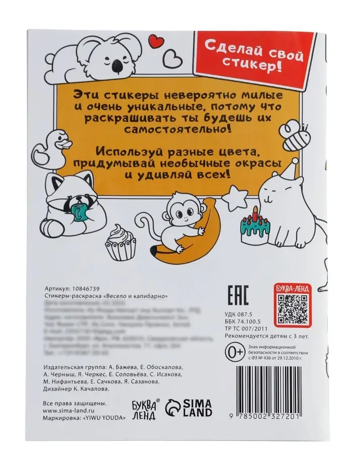 Стикеры-раскраска «Весело и капибарно»