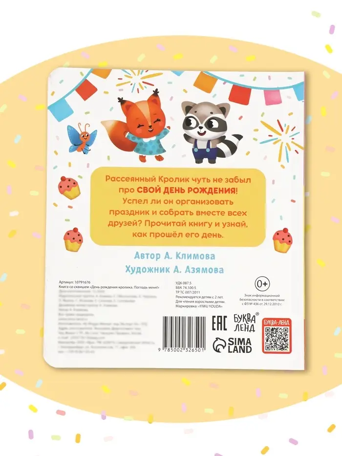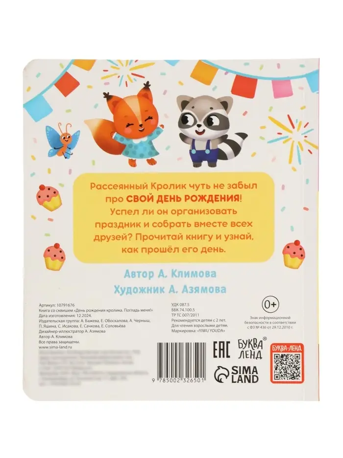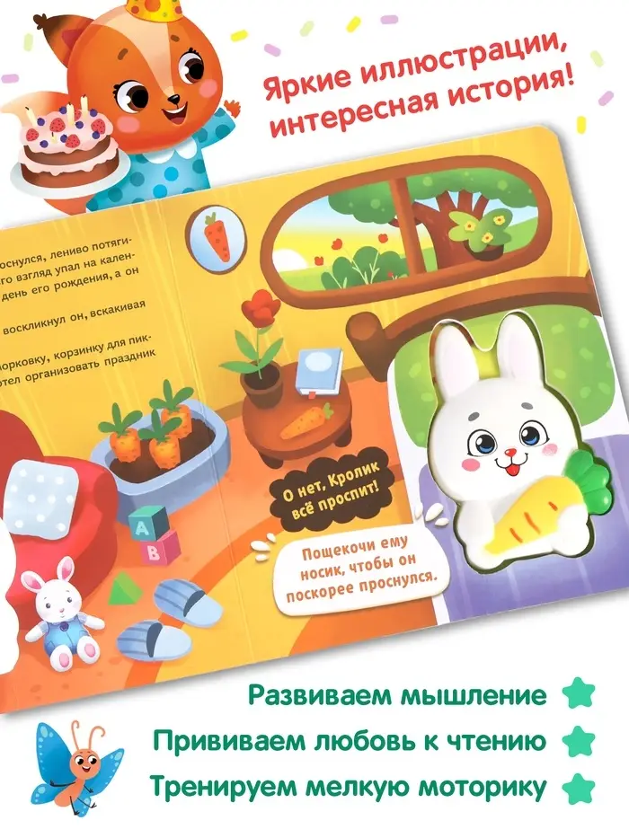 Книга со сквишем "День рождения кролика. Погладь меня!"
