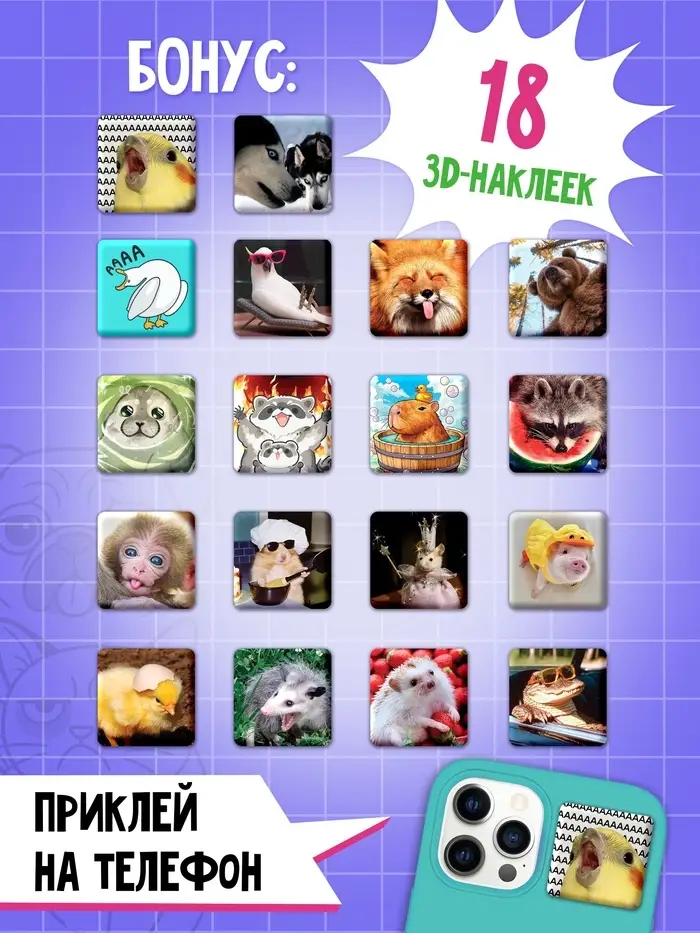 Книжное комплектное издание "Мемный набор" + вложение (ролик, 3д стикеры, значки, брелок)