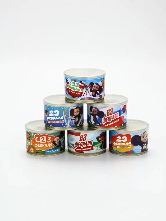 Леденцы монпансье в консервной банке «Чебурашка. 23 февраля», 6 шт