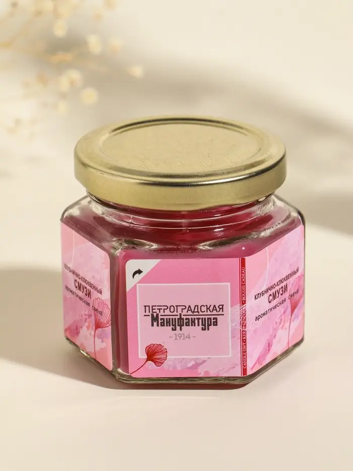 Свеча ароматическая в банке 70 гр воска, клубн-клюкв. смузи