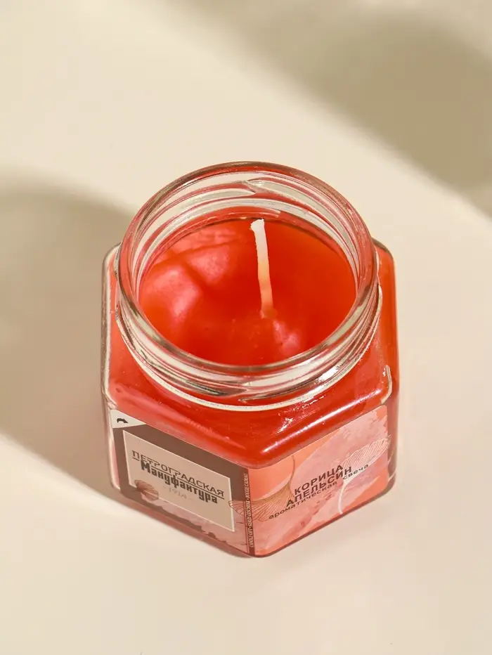 Свеча ароматическая в банке 70 гр воска, корица+аплеьсин