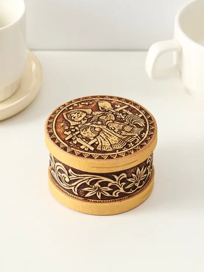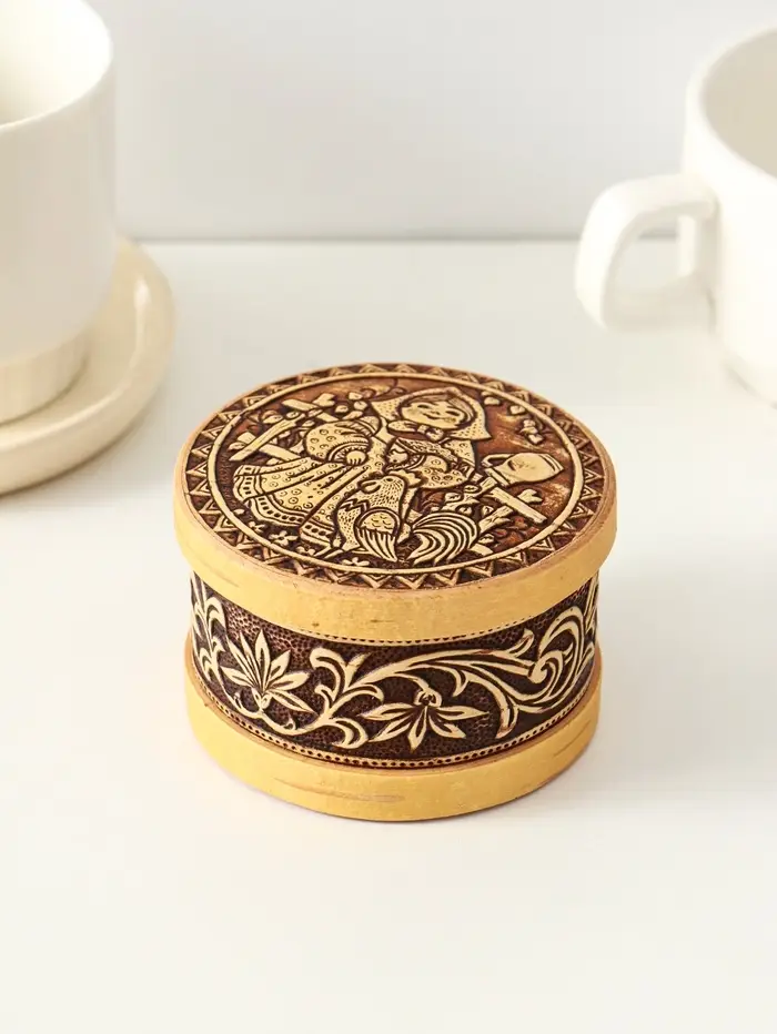 Шкатулка круглая "Машенька", 8,5х5см, береста