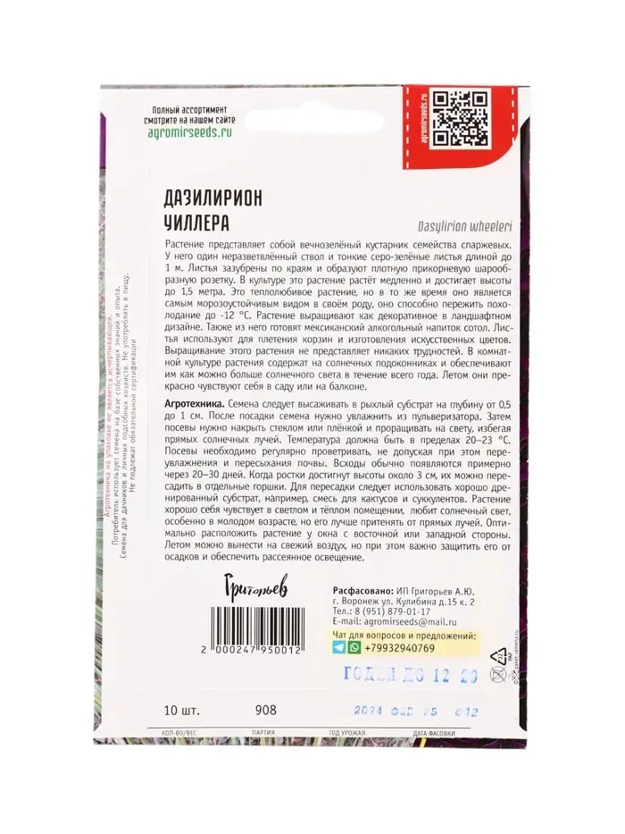 Семена цветов Дазилирион Уиллера 10 шт. / НОВИНКА 12.29 г.