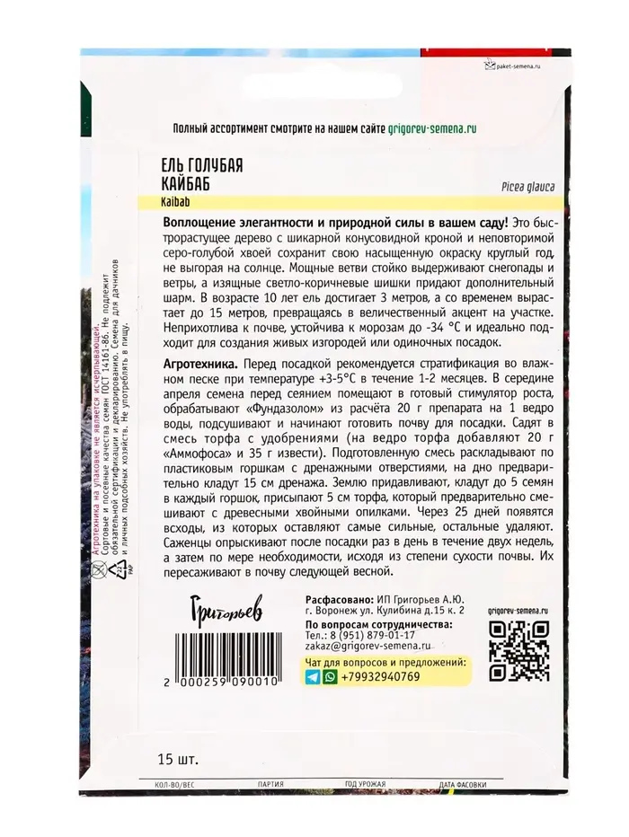 Семена Ель голубая «Кайбаб», 15 шт., «Григорьев»