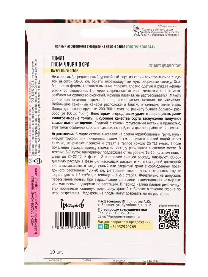 Семена Томат Гном Улуру Охра (Dwarf Uluru Ochre) 10шт. 12.29 г.