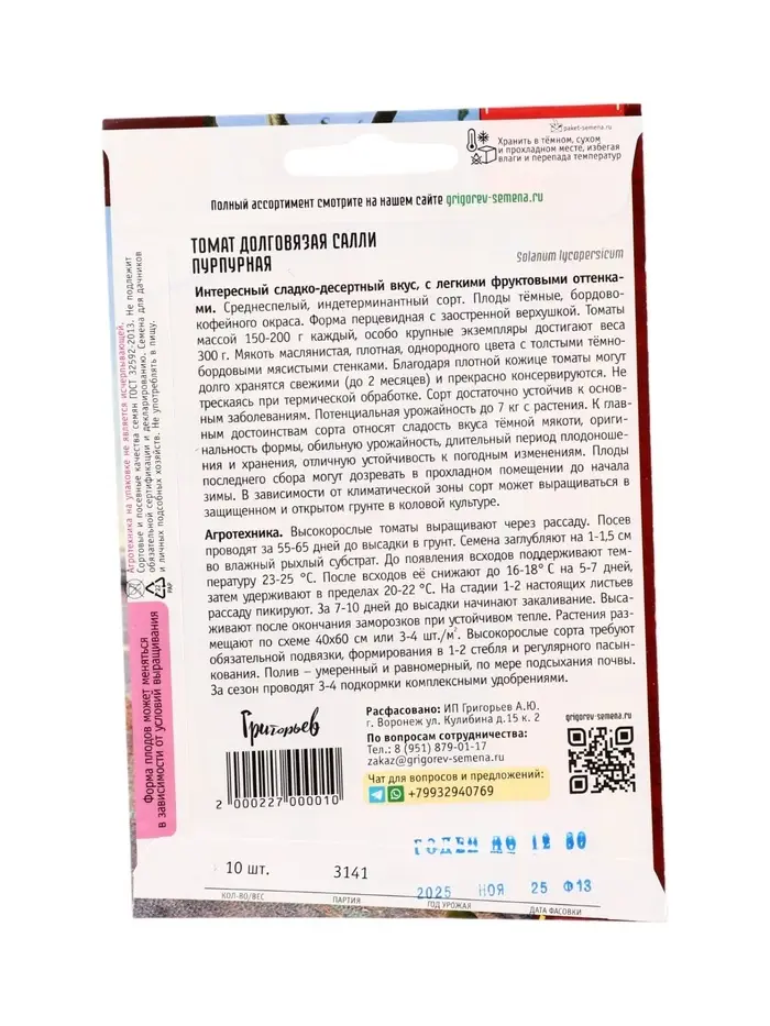 Семена Томат Долговязая Салли Пурпурная 10 шт. 12.29 г.