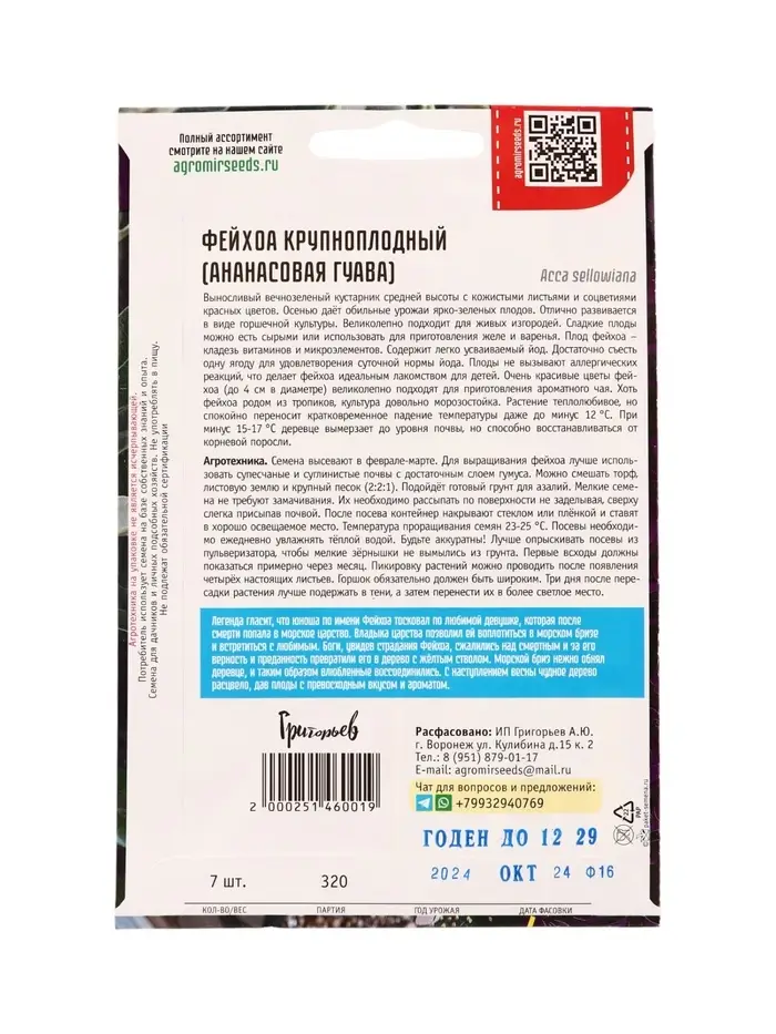 Семена цветов Фейхоа Крупноплодный 7 шт. 12.29 г.