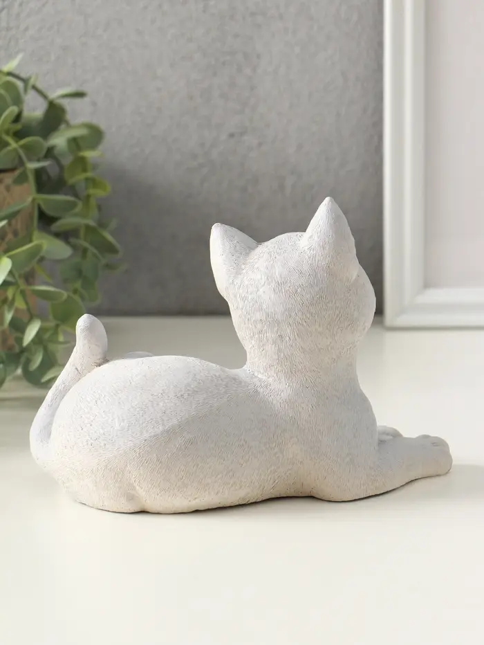 Статуэтка "Кошка лежит" 13х17х12 см, гипс, серый