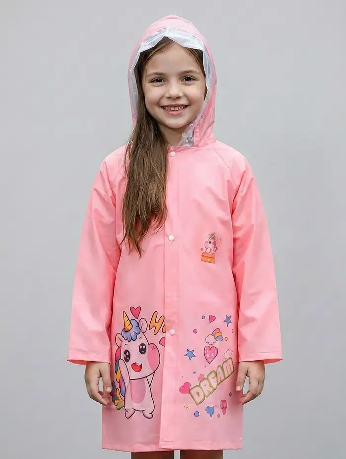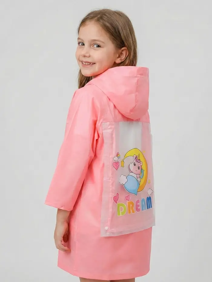 Дождевик детский, розовый единорог, рост 120-130 накл ОТ