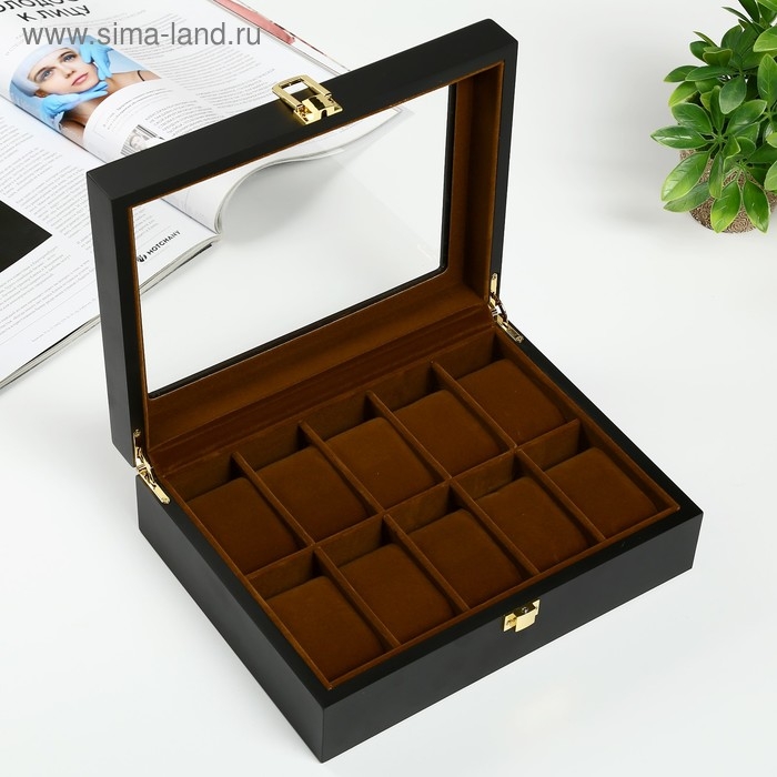 Шкатулка дерево под часы 10 отделений "Чёрная матовая" 8х26х20 см