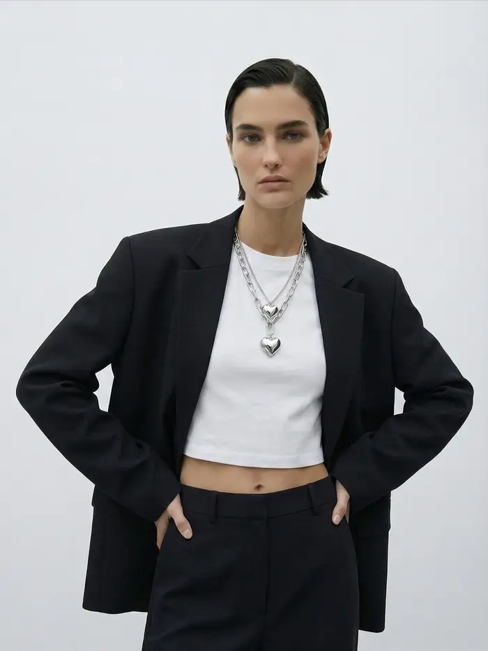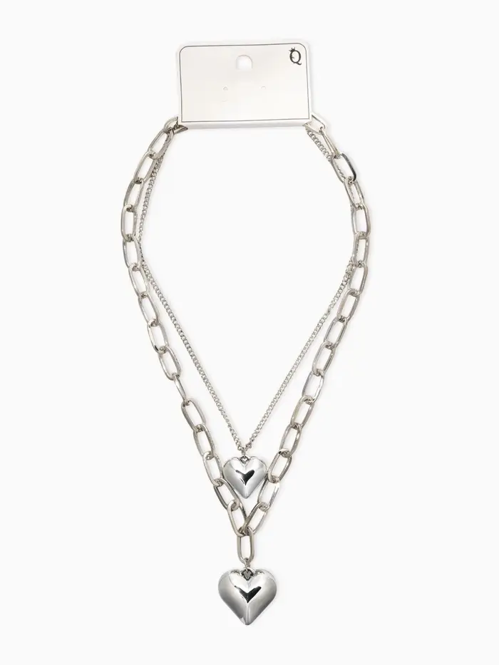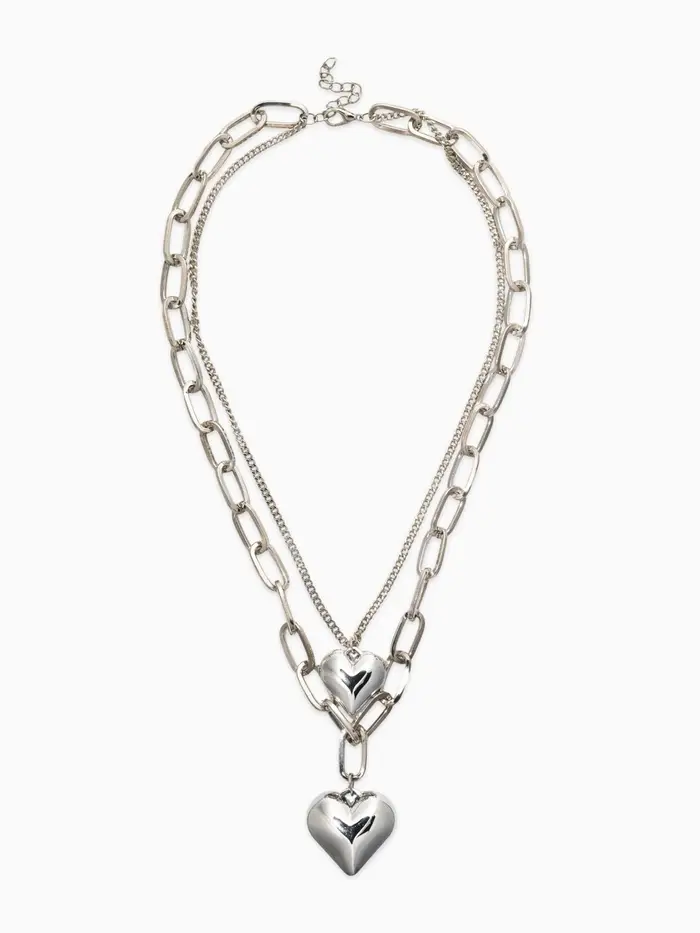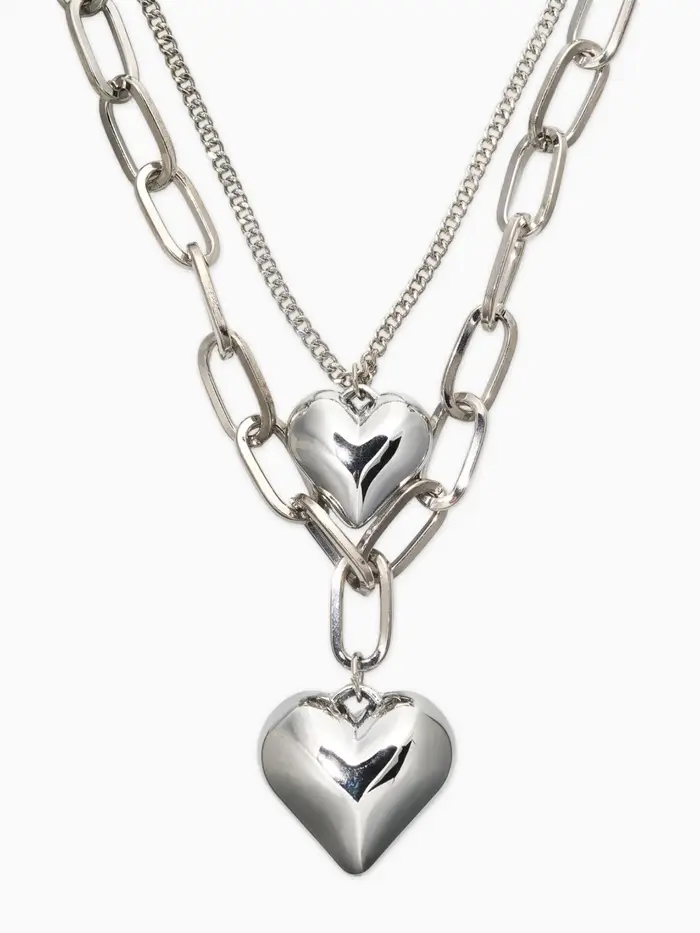 Кулон на цепочке крупное вытянутое звено 2 яруса "Сердечки", цвет серебро