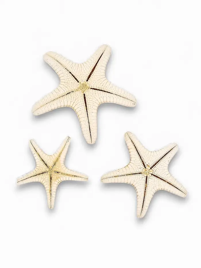 Набор из 3 морских звезд, размер 5-7 см, 7-10 см, 10-12 см, белые