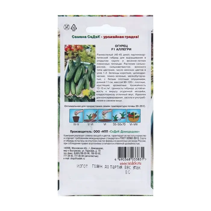 Семена Огурец «Аллегри», F1, 8 шт., «СеДеК»