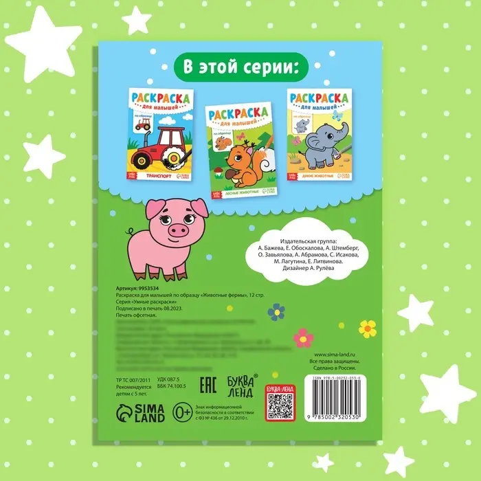 Раскраска для малышей «Животные фермы», по образцу, А5, 12 стр.