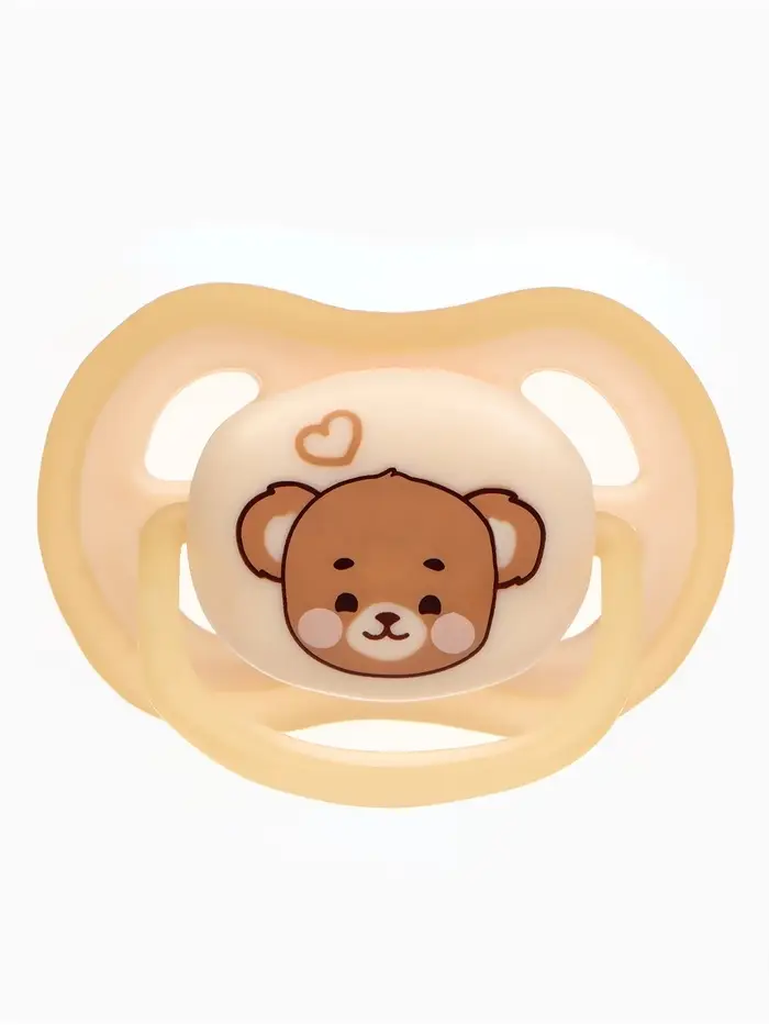 Светящаяся соска-пустышка анатомическая, силикон, от 0 мес., «Мишка», бежевая
