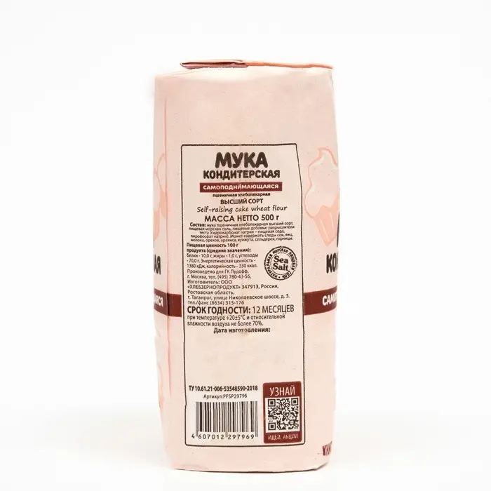 Мука кондитерская "С. Пудовъ" - сбалансированная смесь из отобранной муки, прогрессивного разрыхлителя и натуральной морской соли для пышной и вкусной выпечки. Это профессиональная основа для выпечки на разрыхлителе: кексов, бисквитов, маффинов, печенья, блинов и оладий.