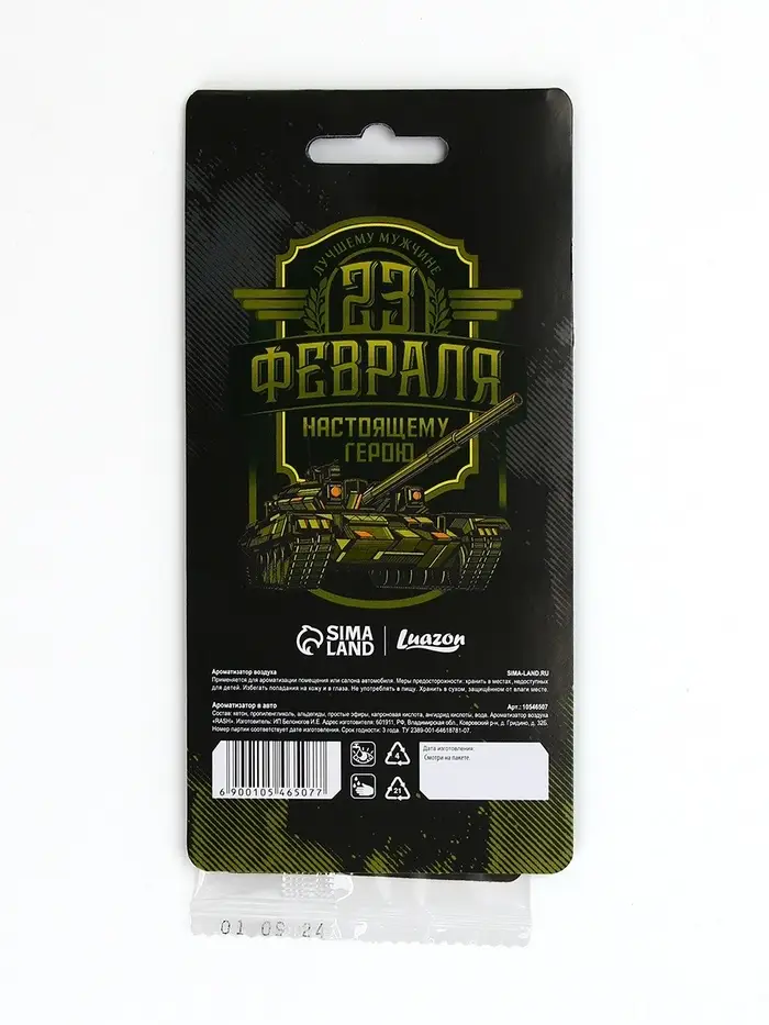 Ароматизатор в автомобиль на 23 Февраля «Настоящему герою», аромат: новая машина